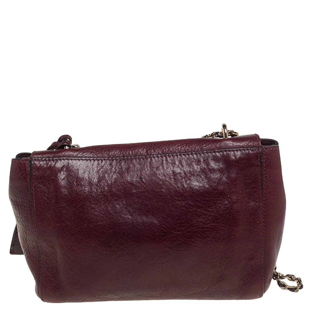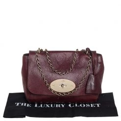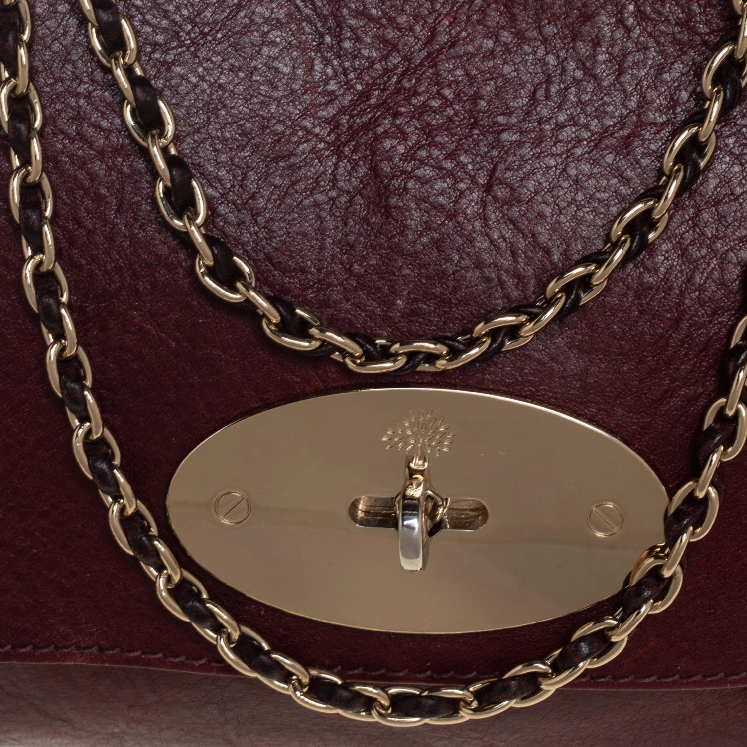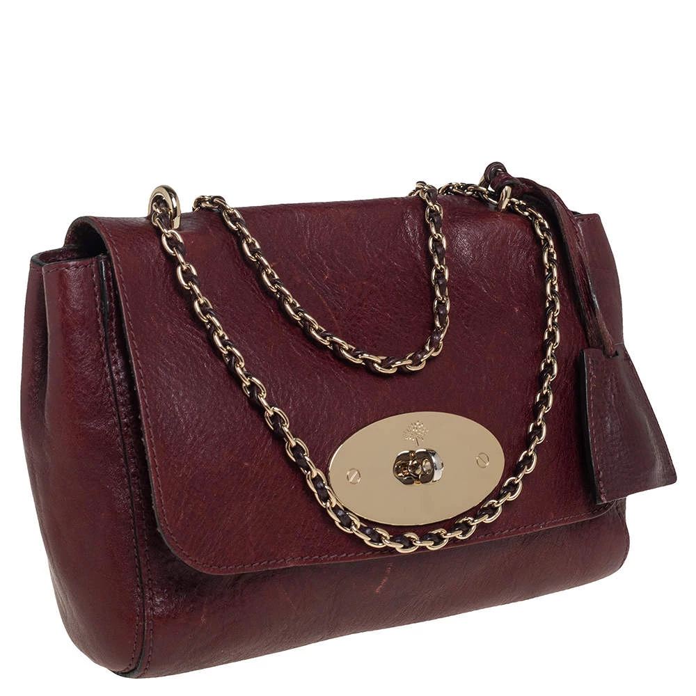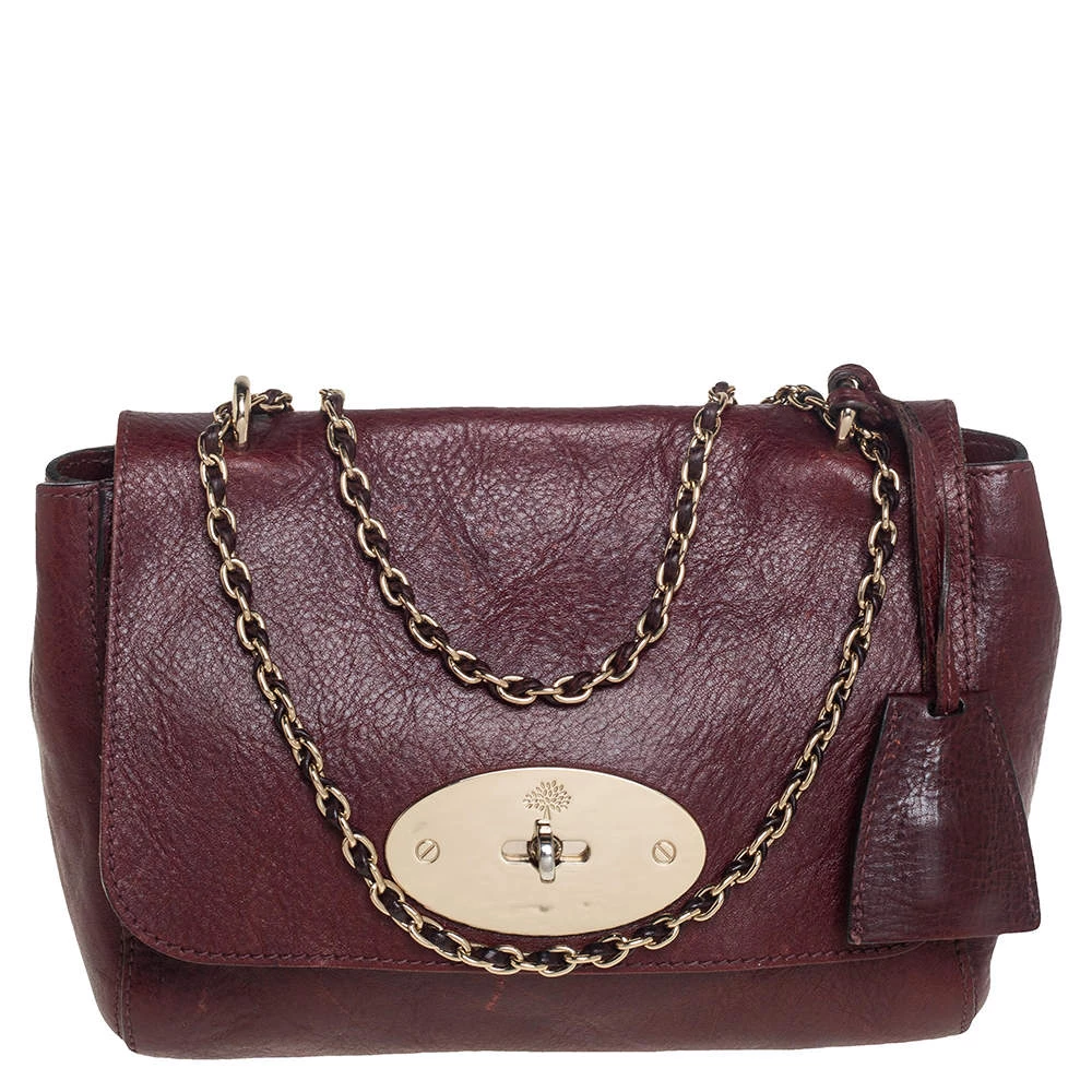This Mulberry Lily bag is lovely. Crafted from leather, the burgundy bag comes with a chain and leather woven strap, a postman’s lock on the flap and a roomy interior. It is ideal for everyday use.