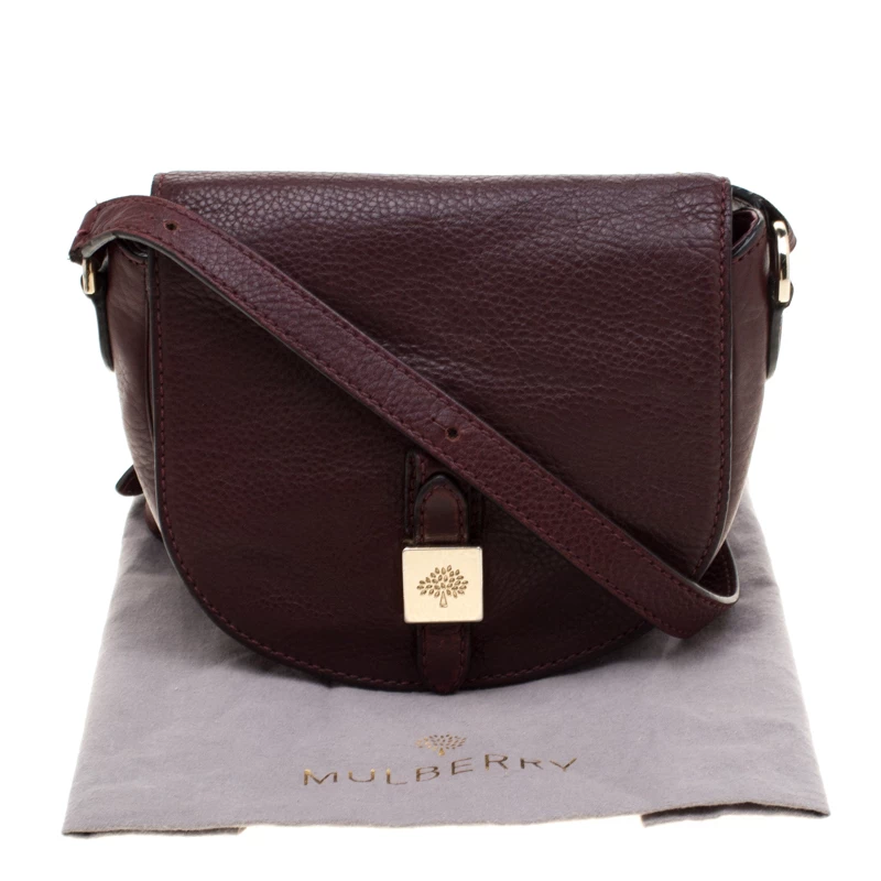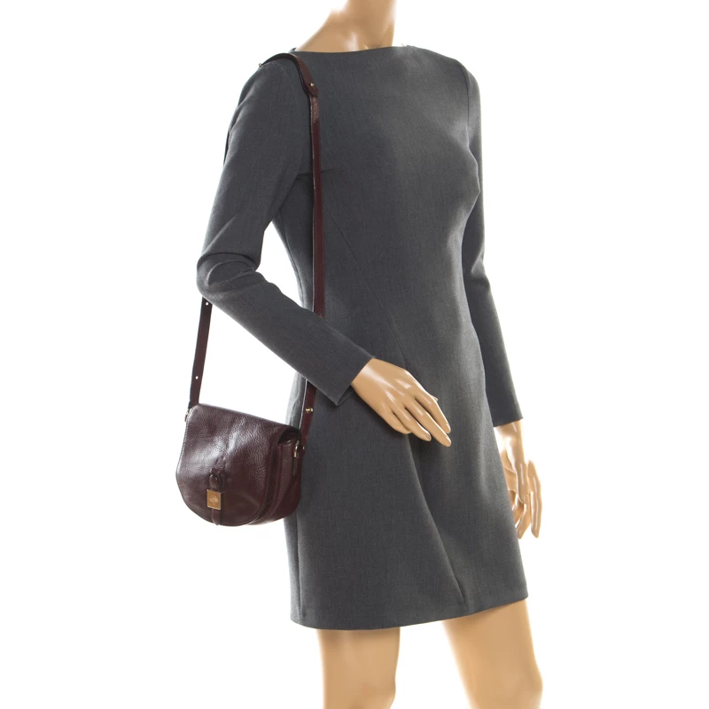 This Mulberry Tessie crossbody bag will make a cute addition to your bag collection. Made from burgundy leather, it features a full flap at the front with gold-tone logo tab. The spacious interior is lined with fabric and houses a zip pocket. The bag is complete with a long crossbody strap.