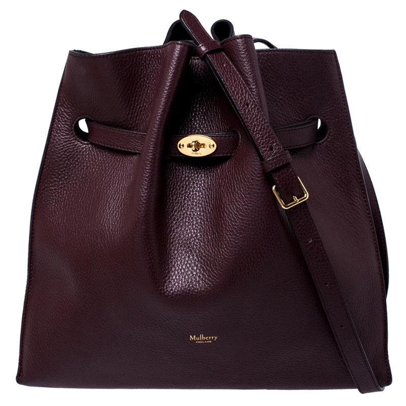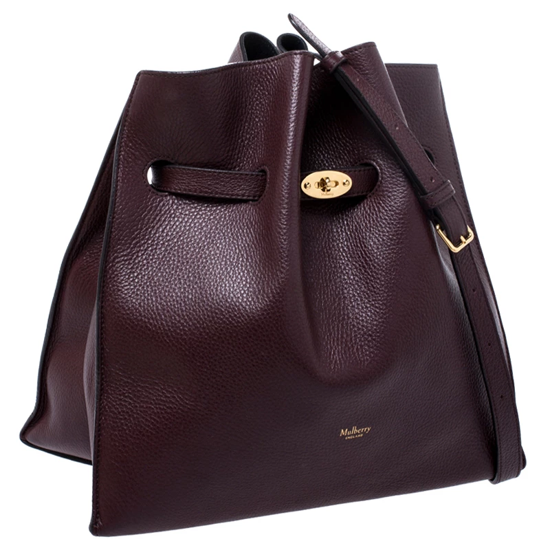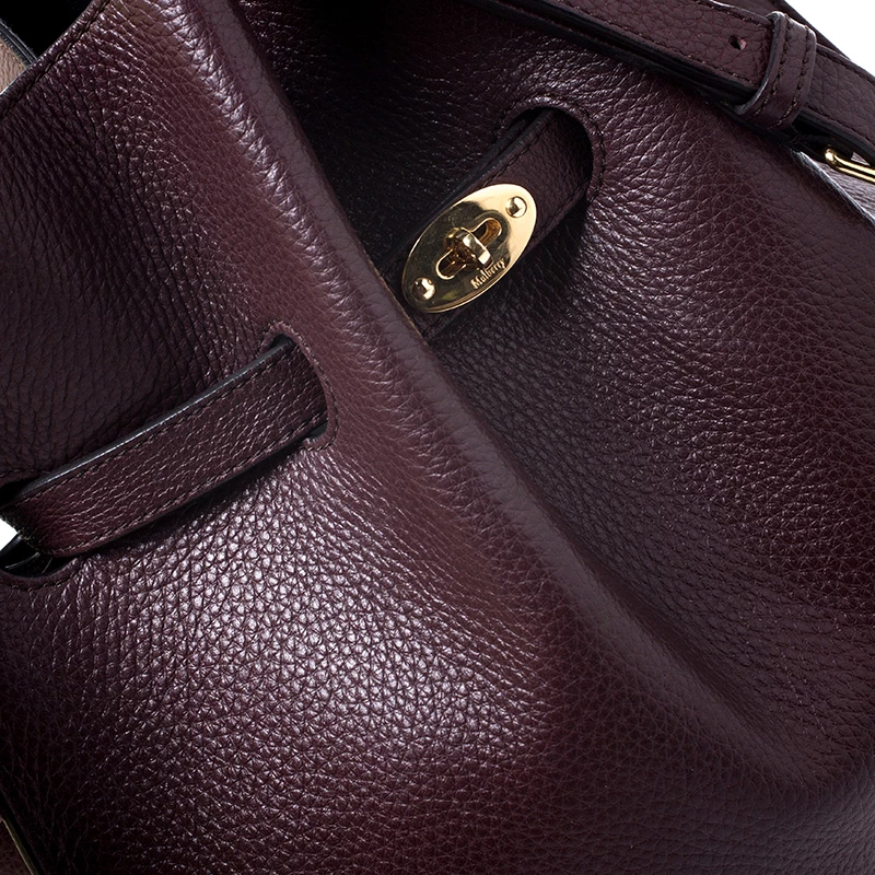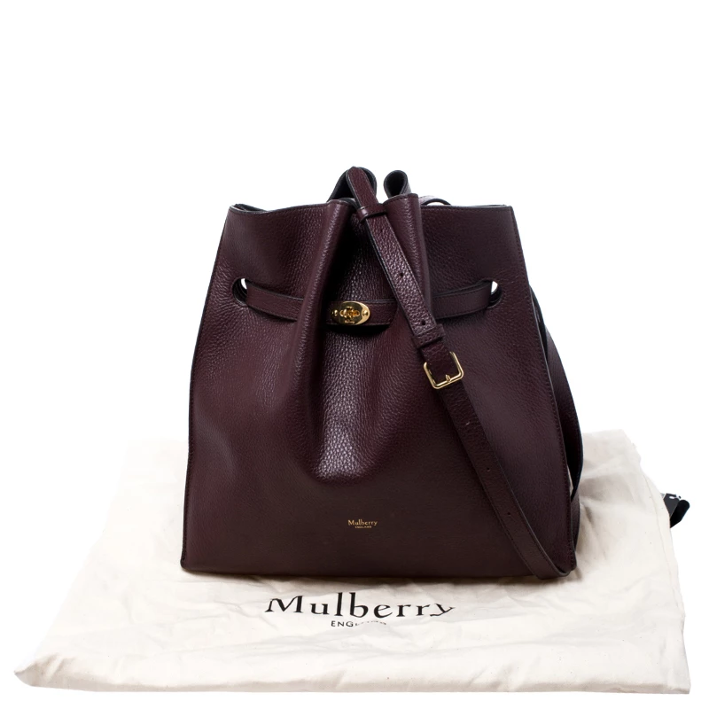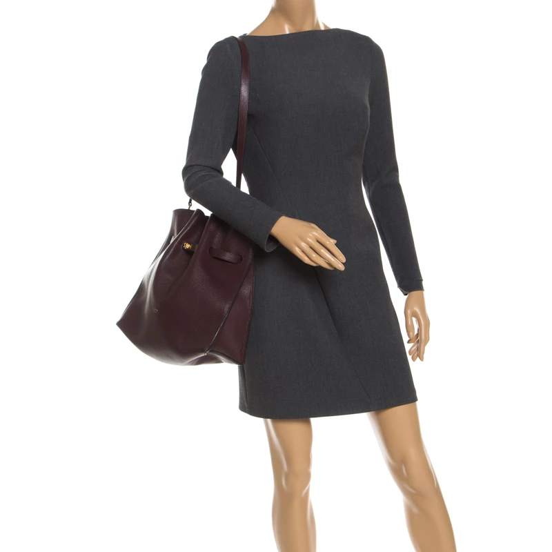 This beautifully designed bag by Mulberry is crafted from leather and comes in a lovely shade of burgundy. This Tyndale shoulder bag has a lovely silhouette, features a drawstring strap with turn-lock closure. The suede interior is spacious while the shoulder strap makes is convenient. The logo makes an appearance on the front. This smartly designed bag is a great choice for everyday use.