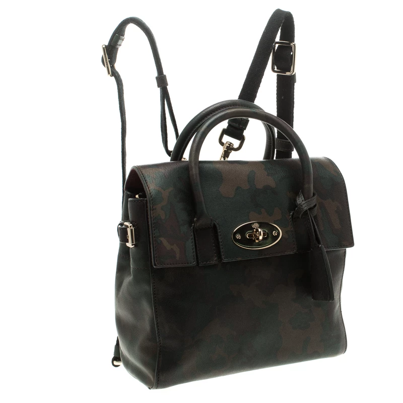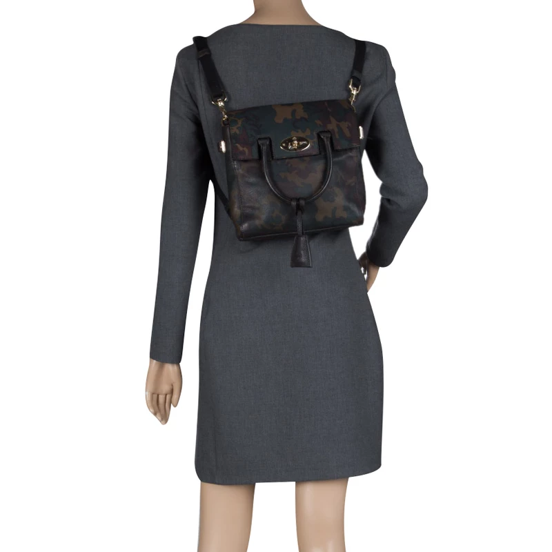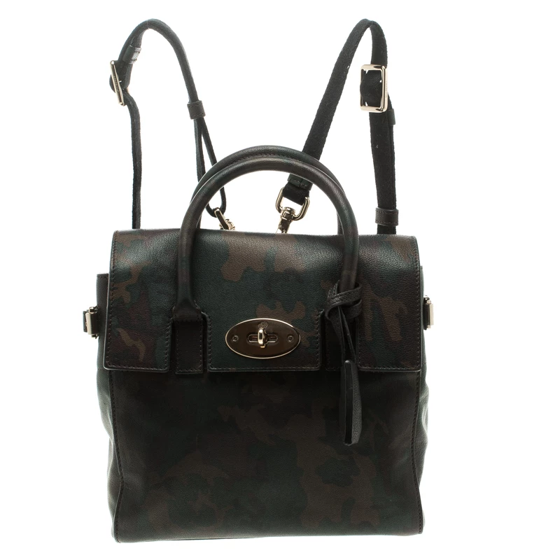 Designed in an ever-stylish camo leather, this Mulberry Delevinge backpack is a versatile piece to add to your collection. It comes with a flap style and detailed with gold-tone hardware. It comes with a rolled top handle, two shoulder straps and an adjustable sling strap. Carry all your essentials in the suede lined interior of this bag.