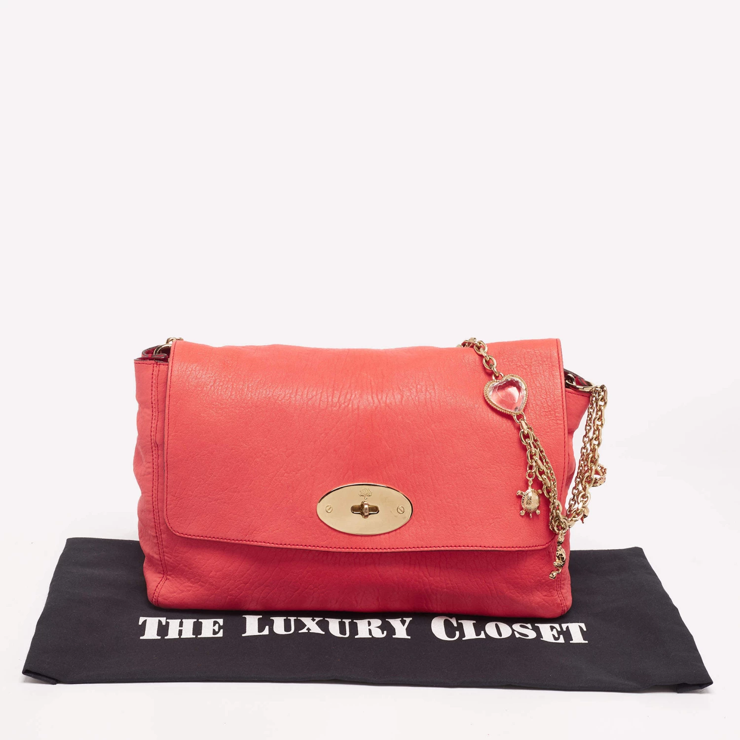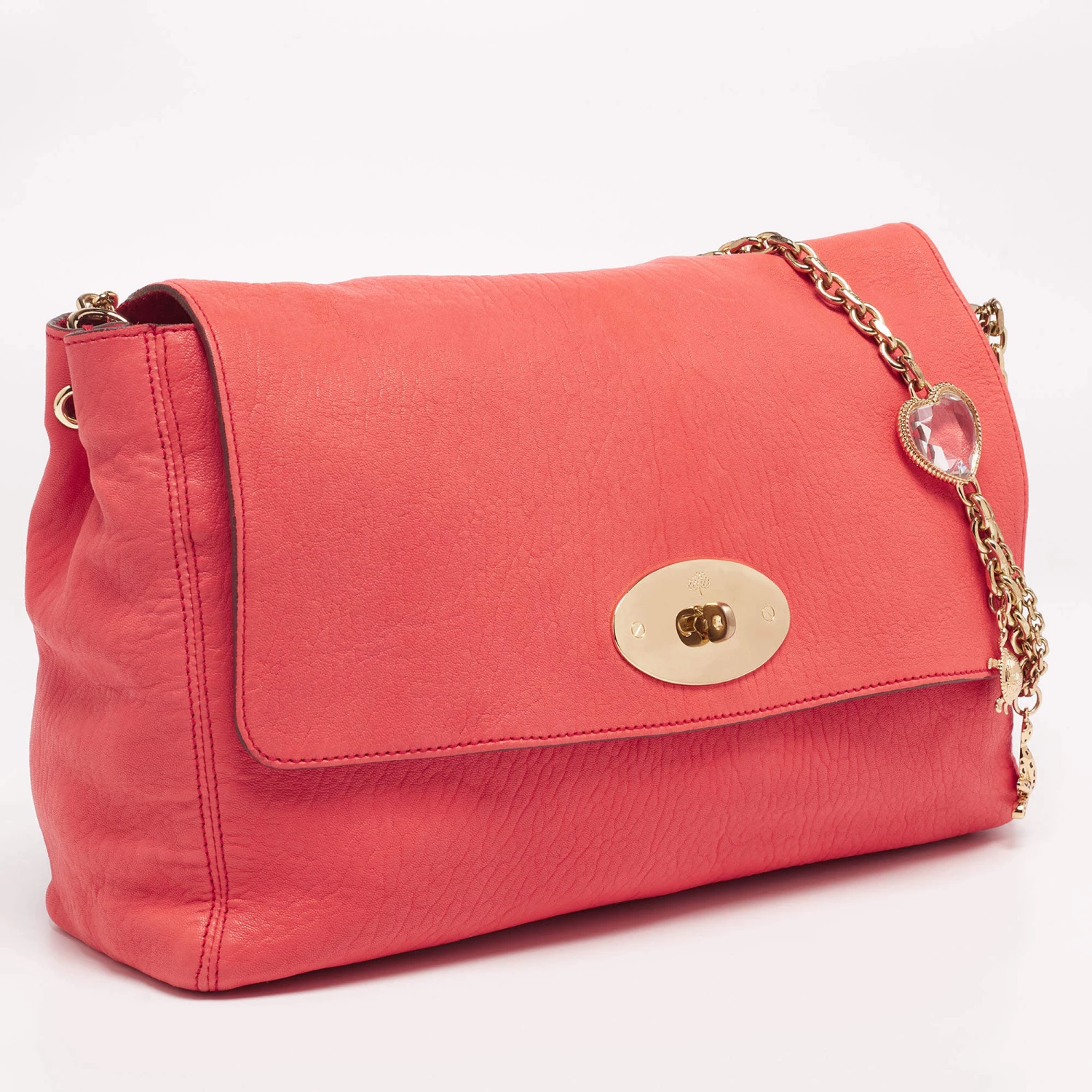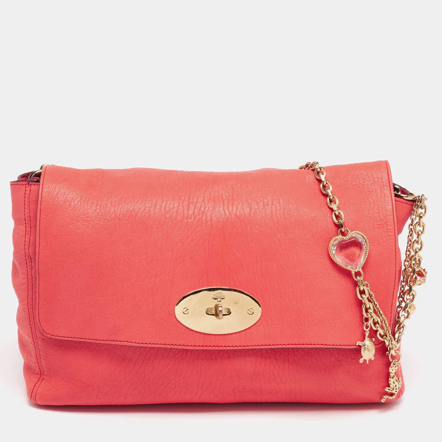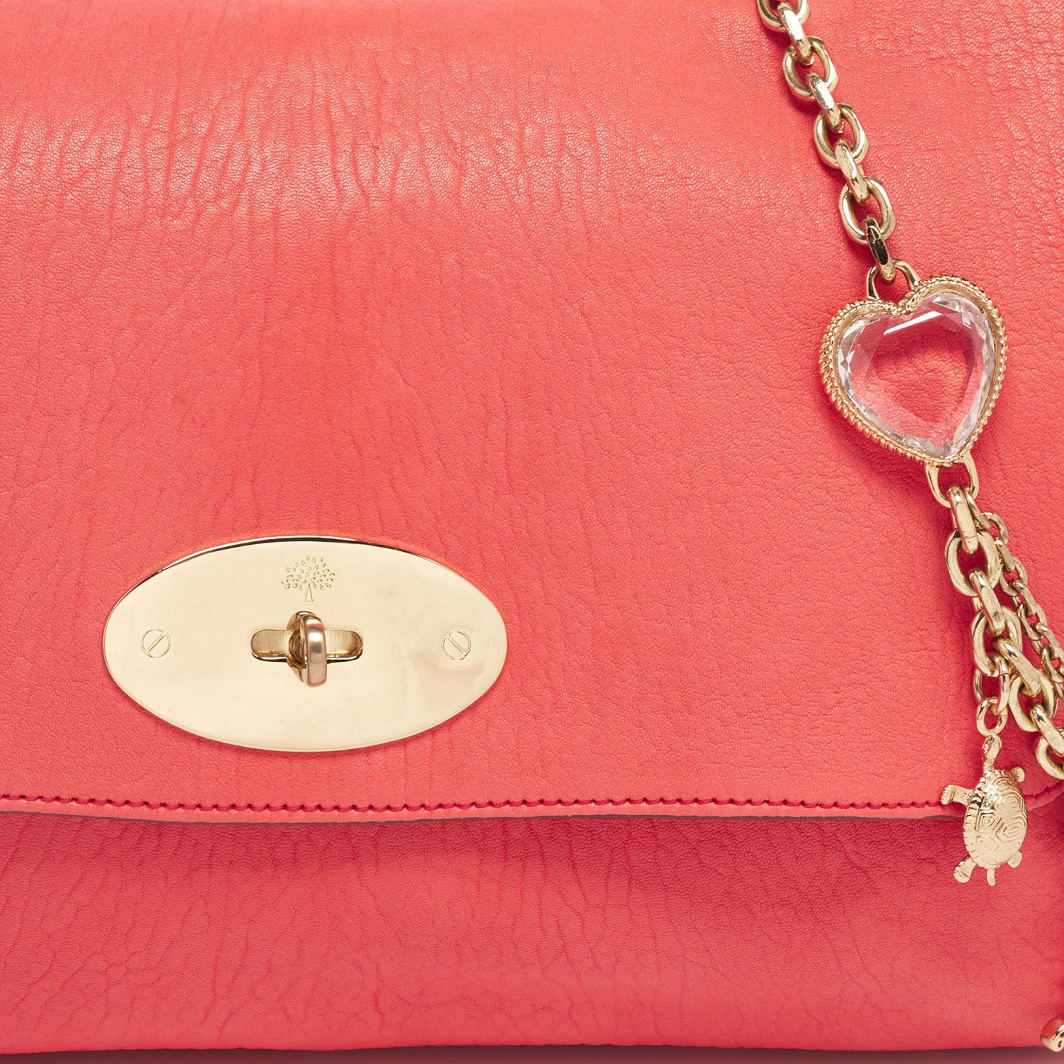 This Mulberry Lily bag is truly lovely. Crafted from leather, the coral orange shoulder bag comes with a slender chain strap, a lock on the flap, and a spacious suede-lined interior. It is ideal for everyday use.