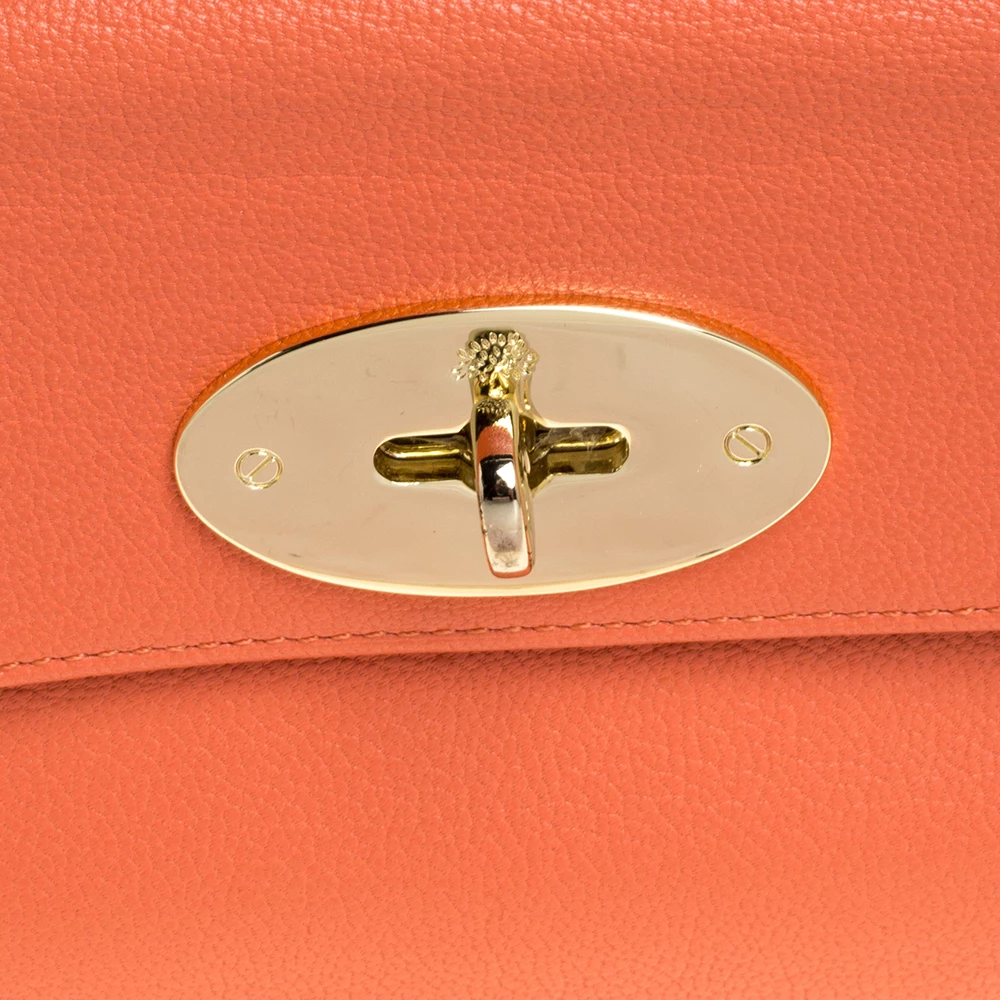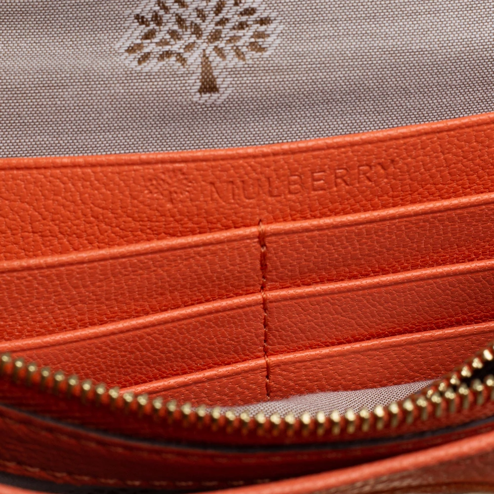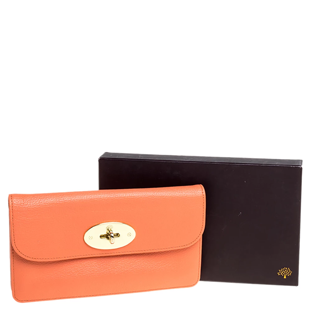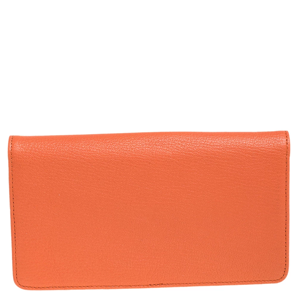 Mulberry introduces a stylish piece of accessory for the modern urbane woman. This orange clutch is just what you need to take your style quotient a few notches higher. It has been crafted from leather and styled with the signature postman lock on the front flap. It opens to a fabric interior that houses a zip pocket and multiple card slots and will probe to be a worthy accessory!