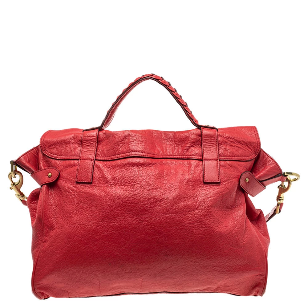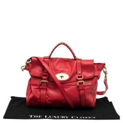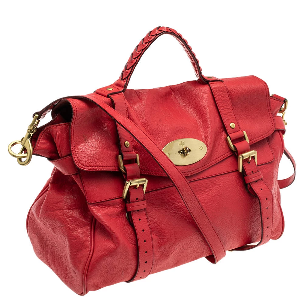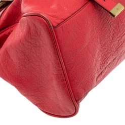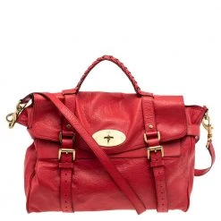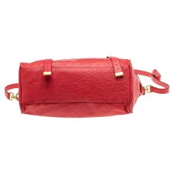 The Oversized Alexa satchel from the House of Mulberry was named after Alexa Chung, a British model. This satchel has been crafted using coral-pink leather and flaunts a braided top handle, gold-toned Postman’s Lock closure on the front, and a slouchy shape. It comes with a shoulder strap.