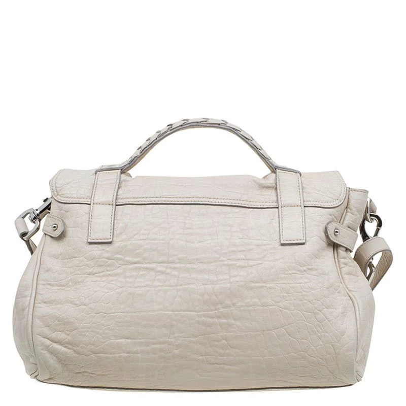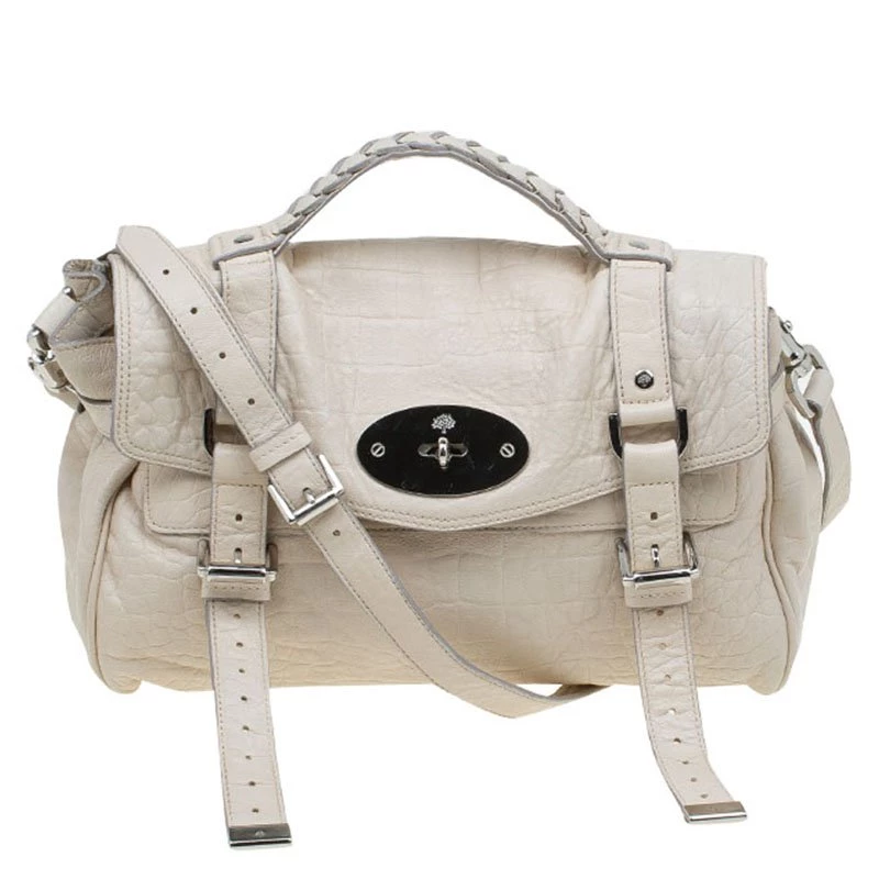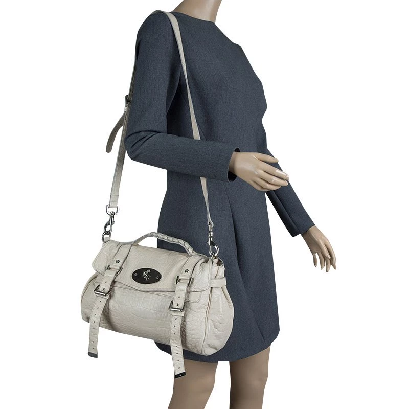 Pristine and limited edition by Mulberry is what you need to complete your bag collection. Mulberry’s Alxea was inspired and named after British style icon Alexa Chung. The structured yet relaxed look is owing to the interesting construction mix of the iconic Bayswater and men’s briefcase. Take it to work or the cafe. Effortlessly chic this Alexa is crafted in cream crocodile embossed leather with silver tone hardware.