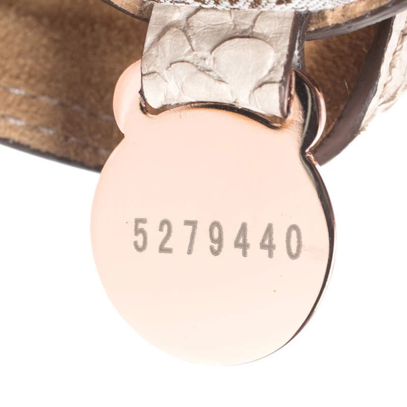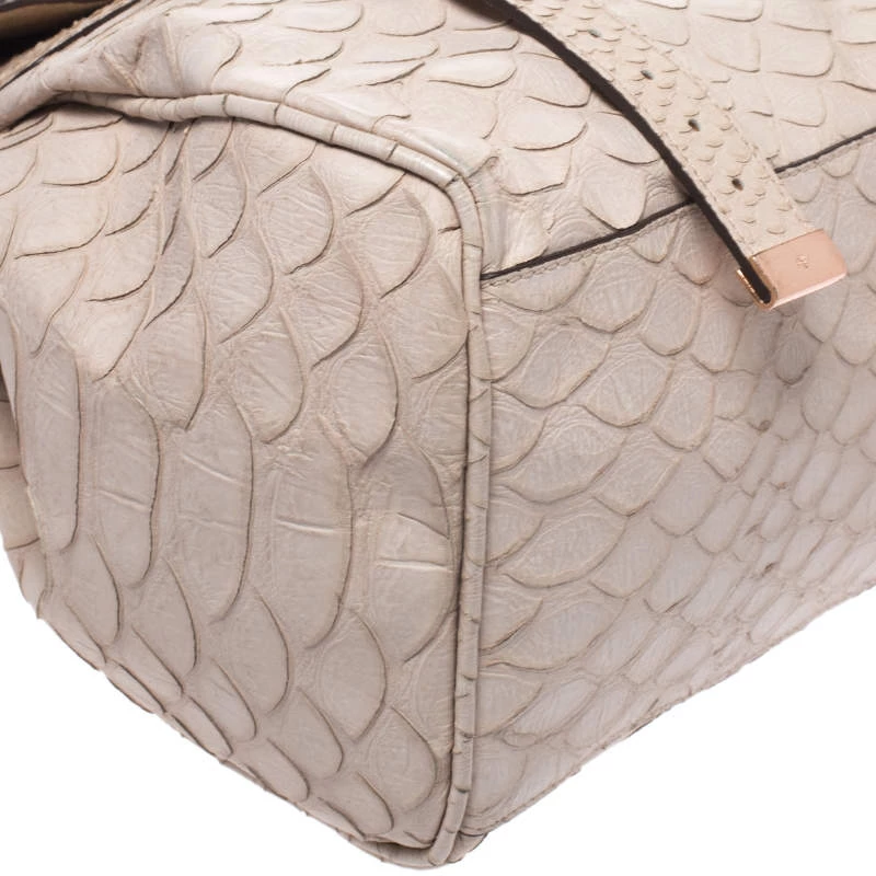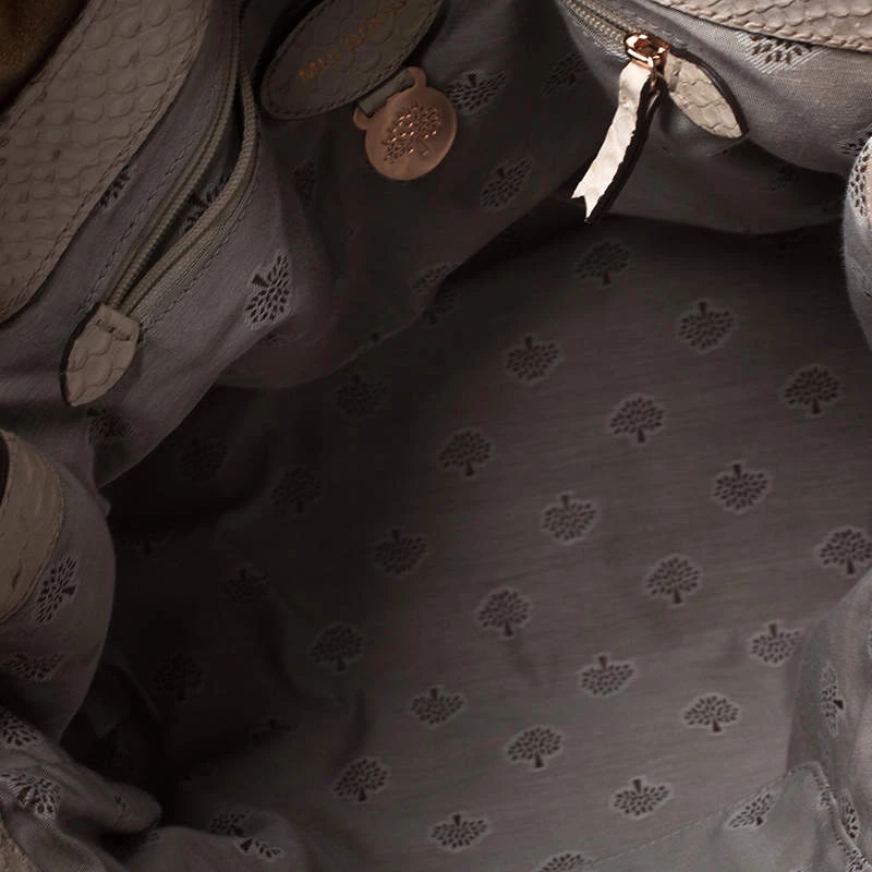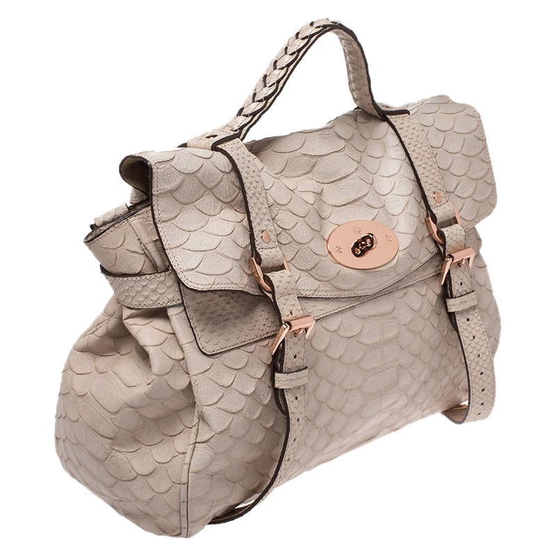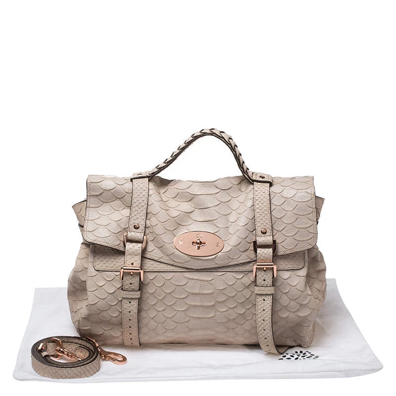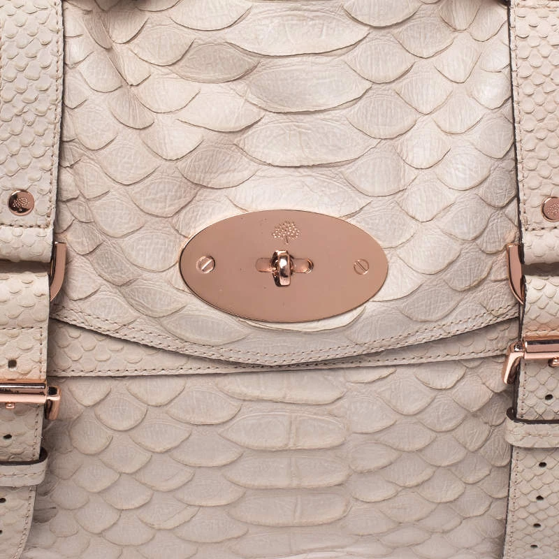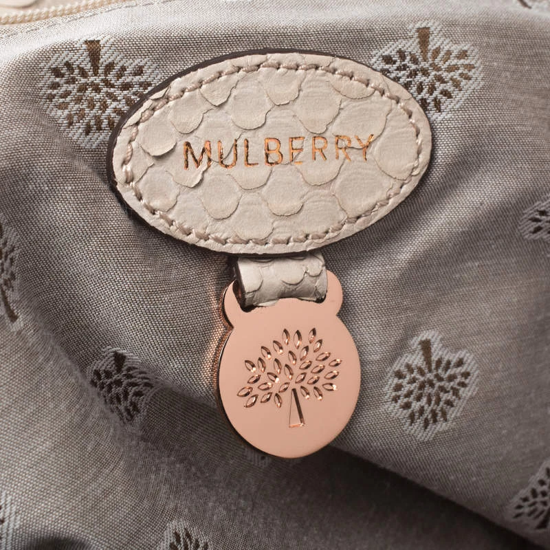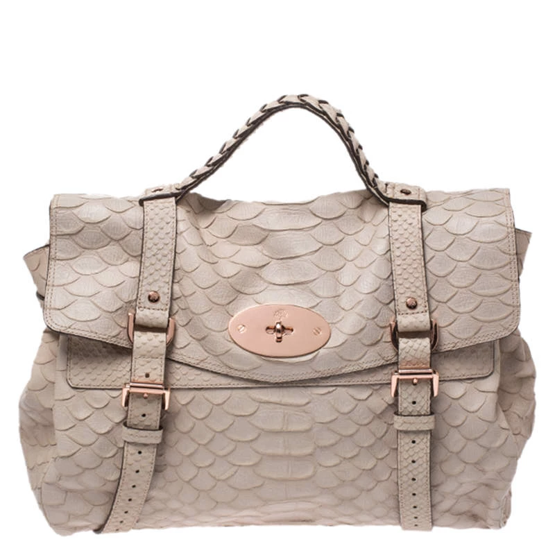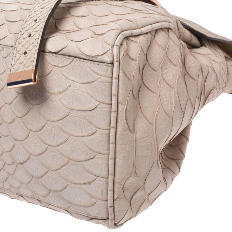 Mulberry brings you this handy bag that will dutifully support you wherever you go. It has been crafted from python-embossed leather in cream and equipped with a twist lock on the flap that secures a spacious fabric interior capable of holding all your necessities. It is held by a single handle and a detachable shoulder strap.