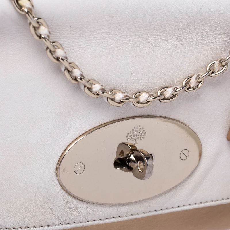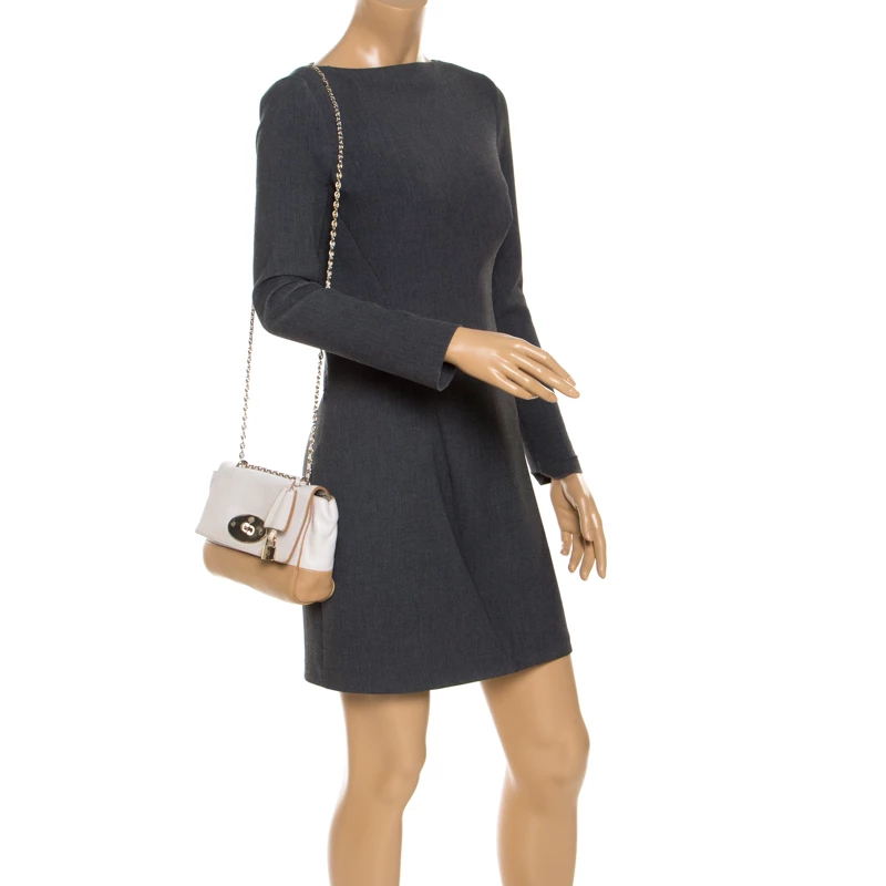 This Mulberry Lily shoulder bag is lovely. Crafted from leather, the cream/tan bag comes with a chain and leather woven strap, a postman’s lock on the flap and a suede-lined interior. It is ideal for everyday use.