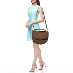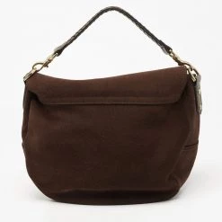 Easy to carry and stylish in appearance, this Effie satchel from Mulberry will certainly be your favorite pick this season. It is crafted using dark-brown suede and leather, with gold-tone hardware elevating its beauty. It provides two handles and a spacious suede-lined interior.