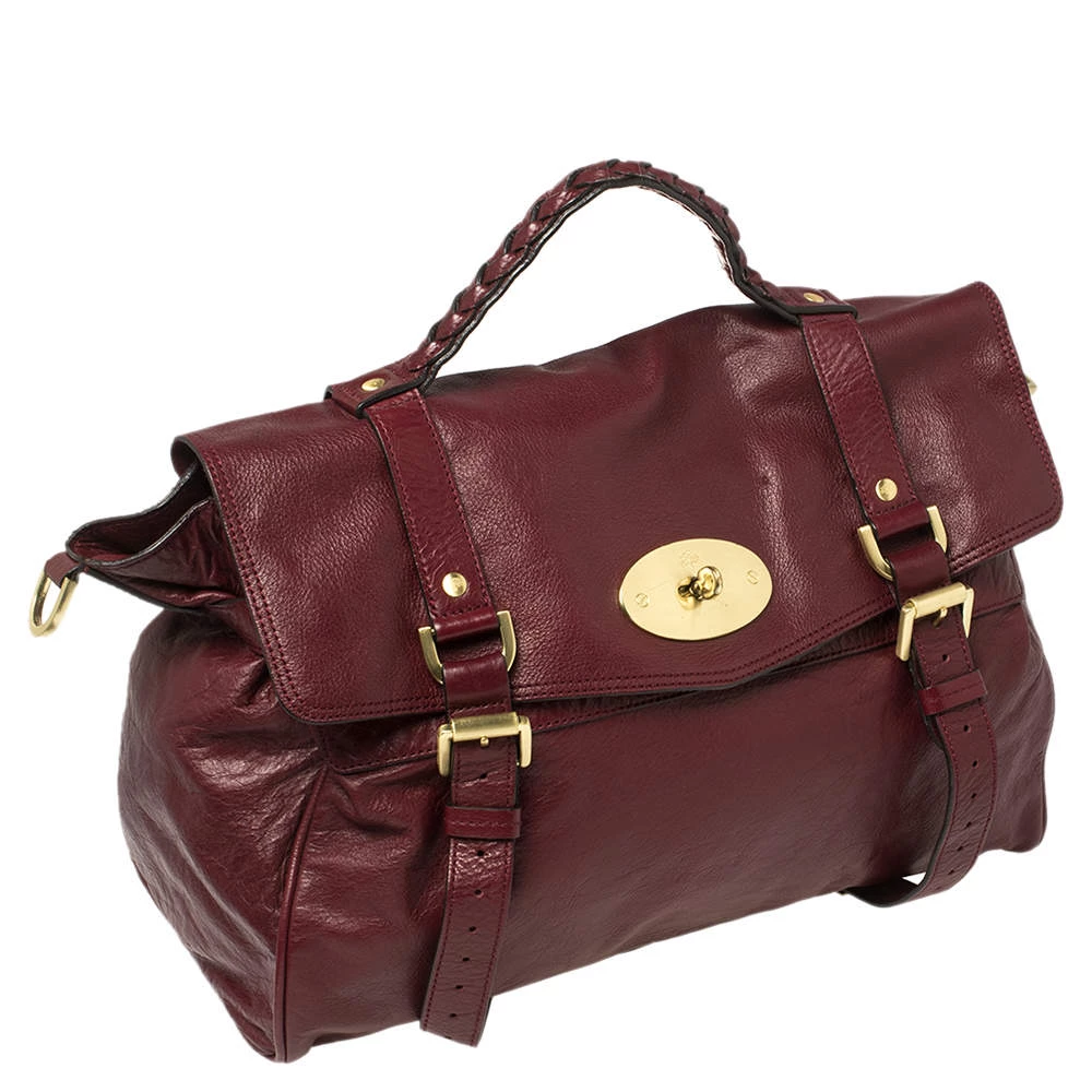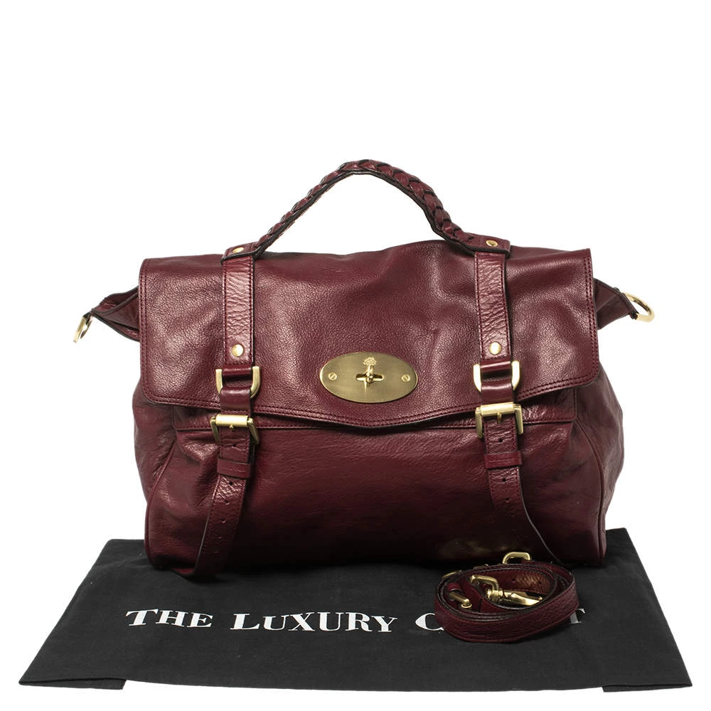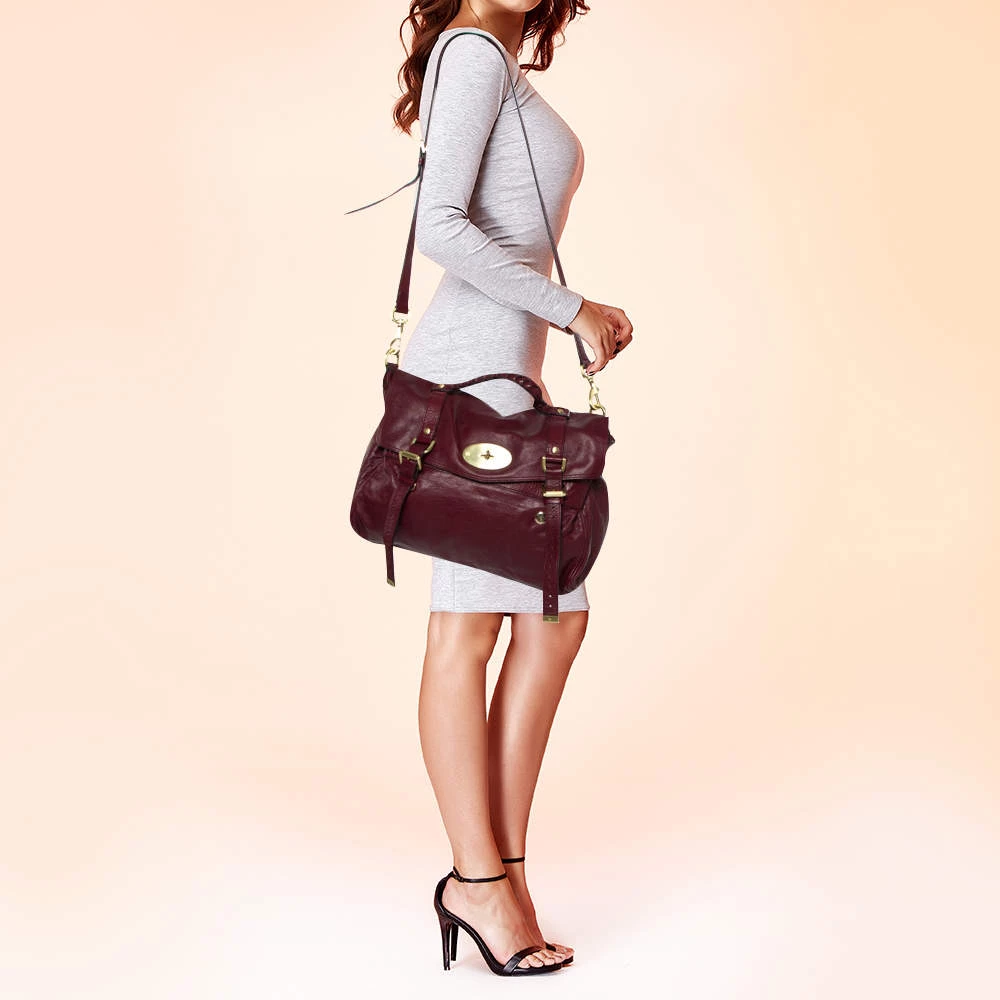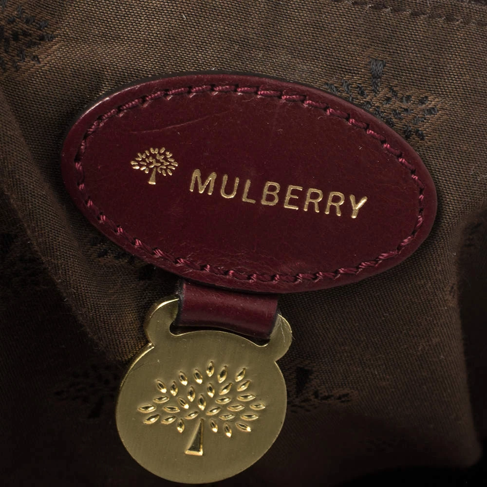 Mulberry brings you this handy bag that will dutifully support you wherever you go. It has been crafted from leather in red and equipped with a twist lock on the flap that secures a spacious fabric interior capable of holding all your necessities. It is held by a single handle and a detachable shoulder strap.