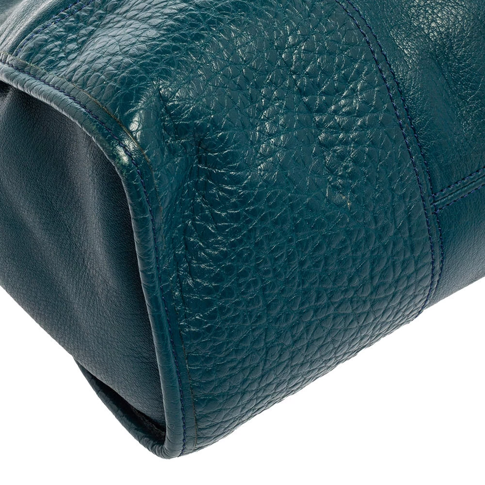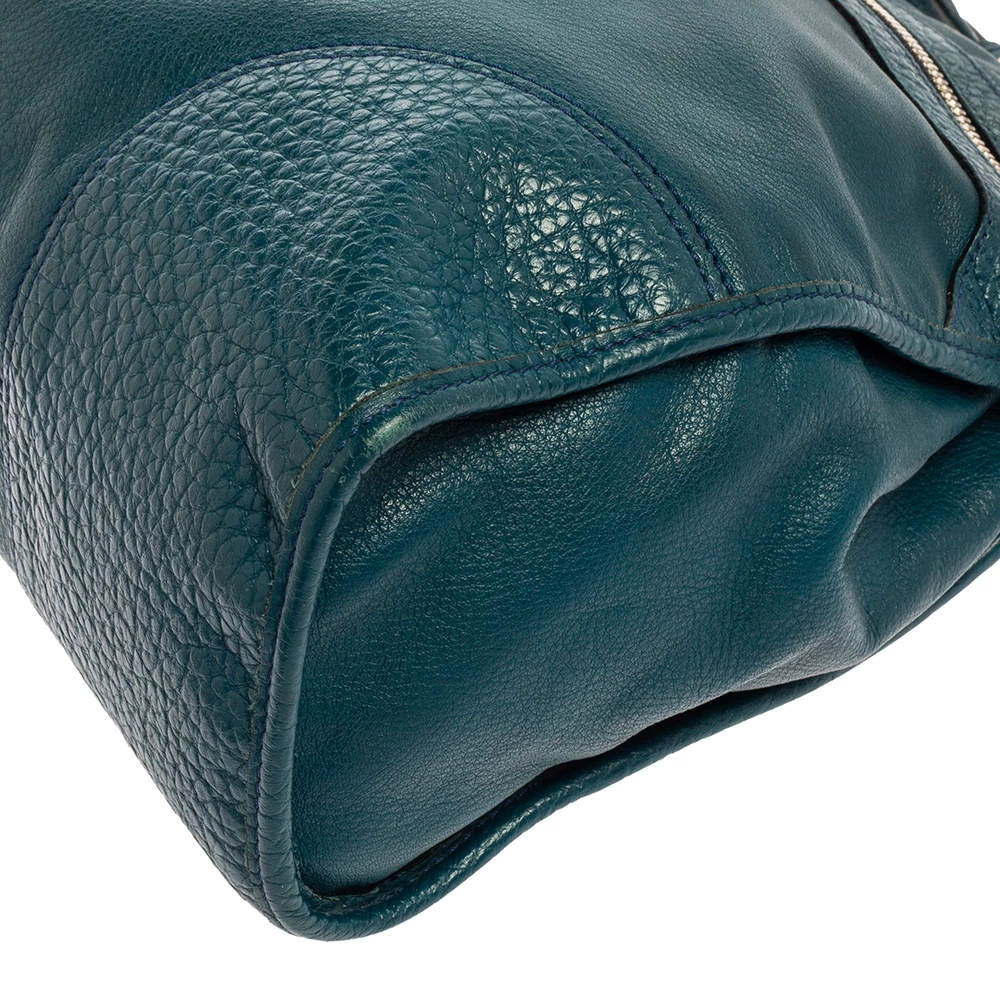 This versatile and practical Taylor bag from Mulberry is perfect for daily use. Crafted from dark teal green leather, this feminine bag features gold-tone hardware and a front zipper that opens to a fabric-lined interior. With a top handle and a detachable long strap, this bag can be used as per your convenience.