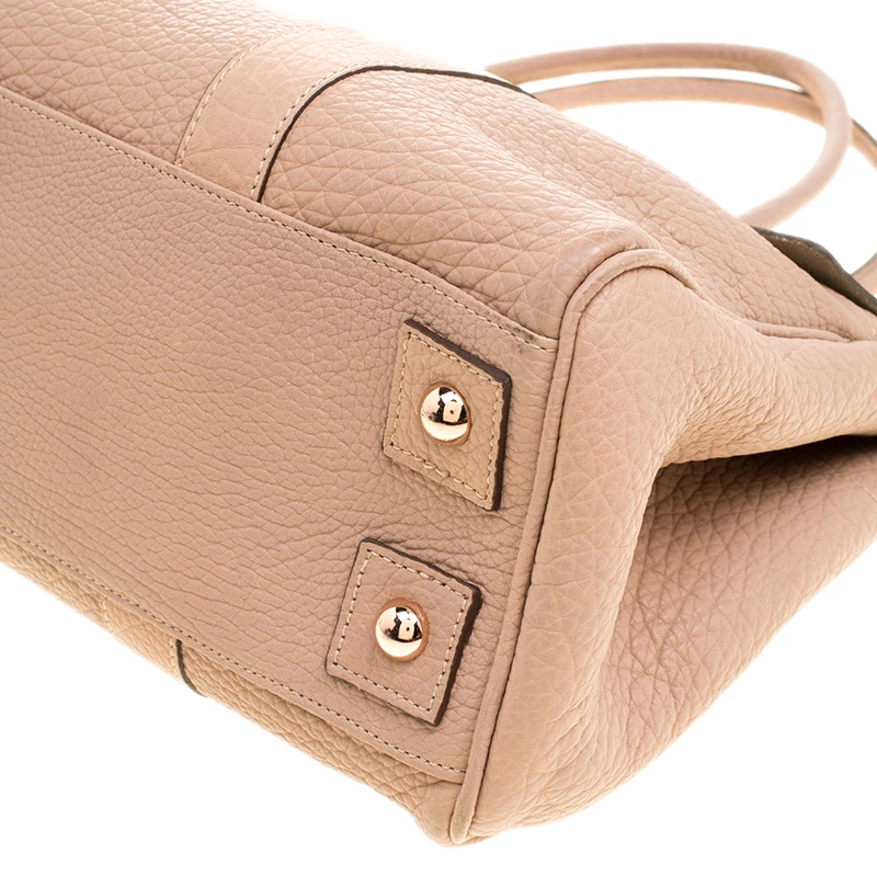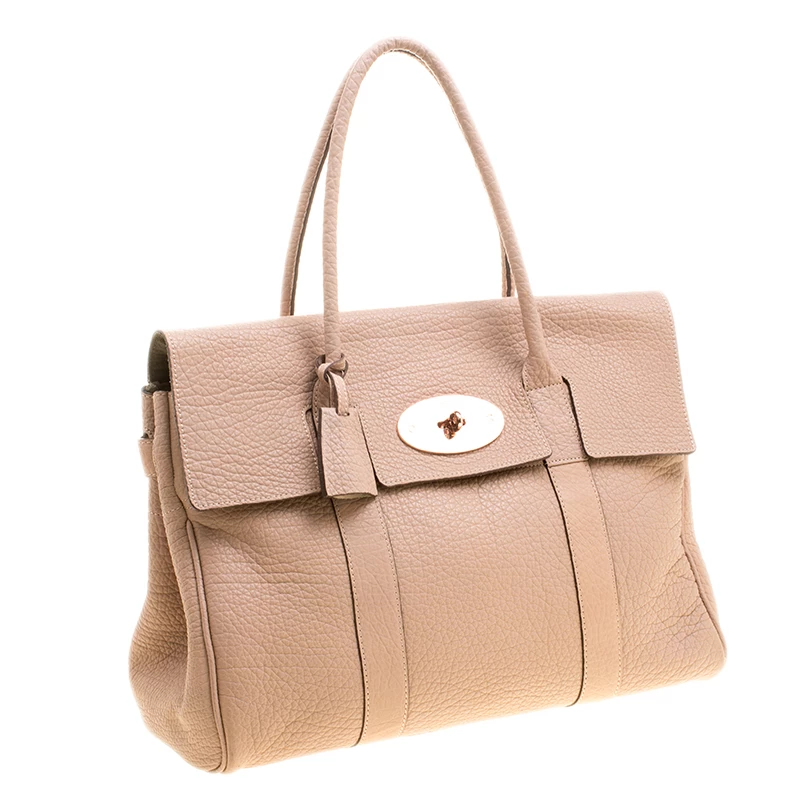 Satchels like these are hard to come by, so quickly grab one when you can. Crafted from grained leather, this Mulberry bag is equipped with dual top handles, a leather tag and protective metal feet at the bottom. The turn lock closure opens to a spacious suede lined interior that houses a zip pocket.