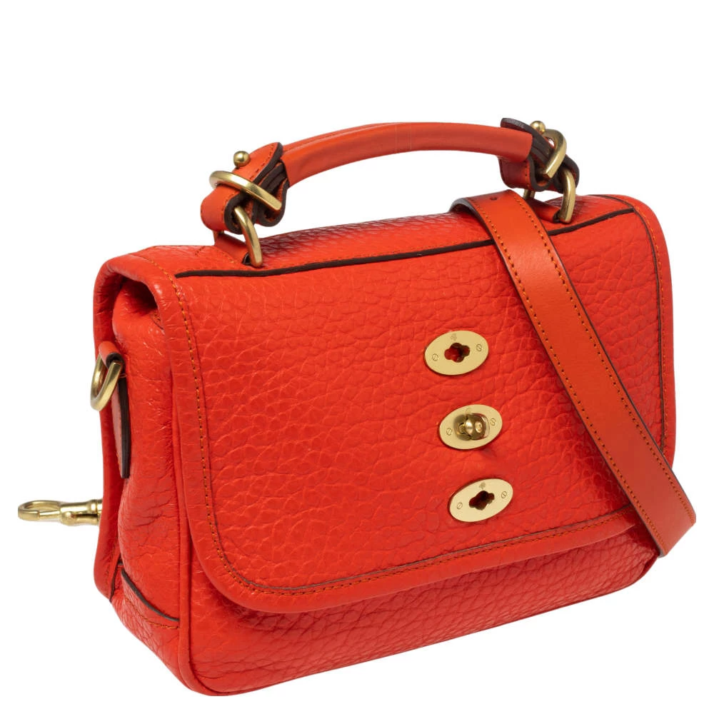 Crafted from leather, this fabulous Mulberry bag has a front flap that is detailed with three lock details and opens to a lined interior. It flaunts a single top handle and an optional shoulder strap.