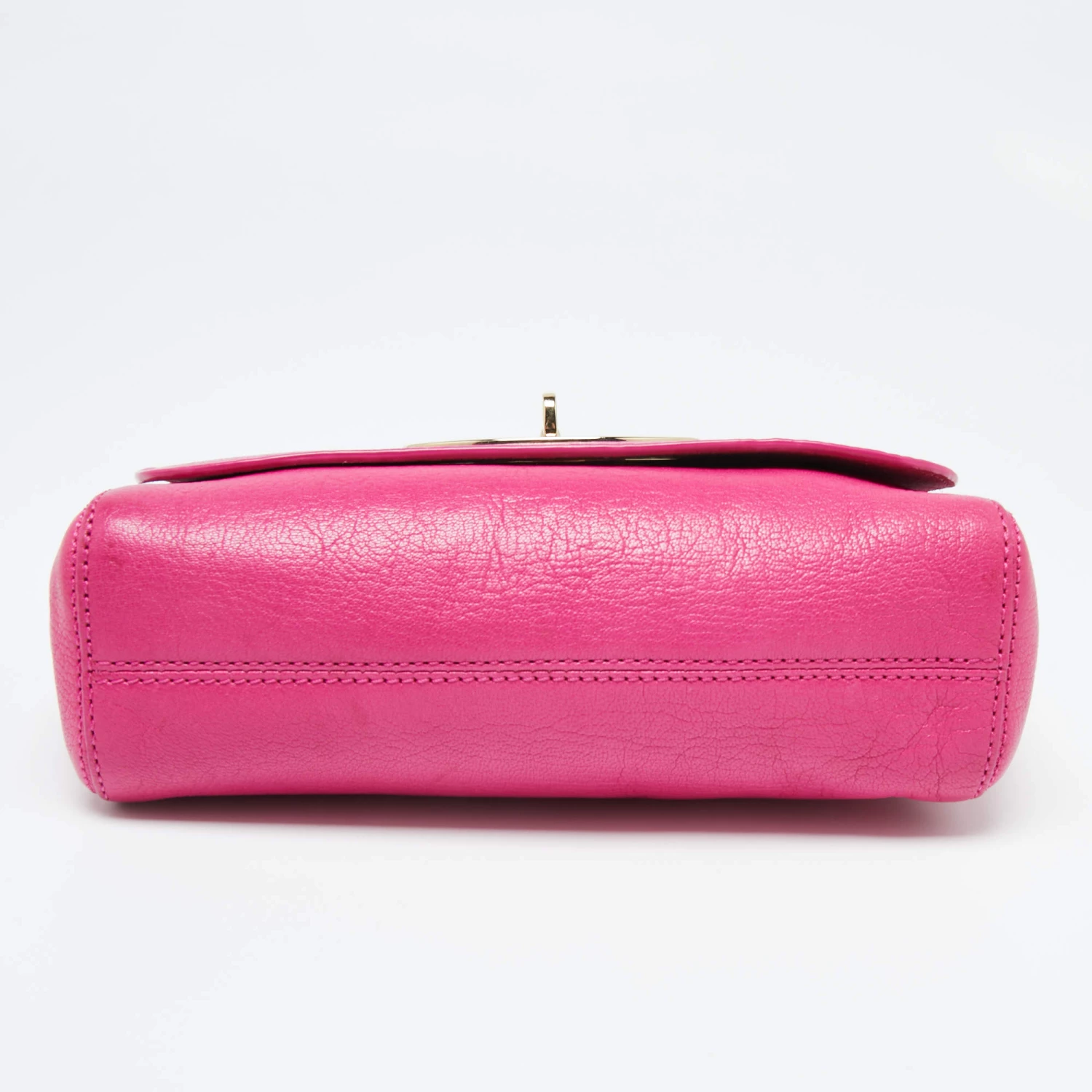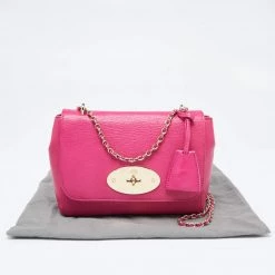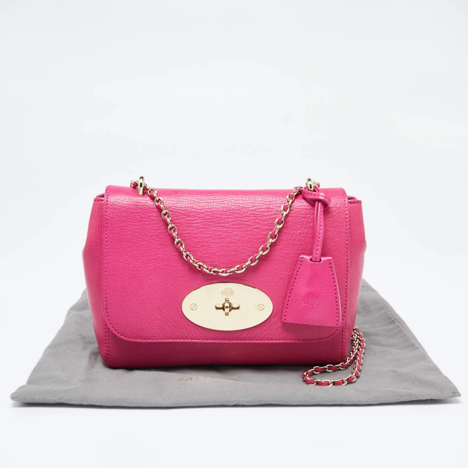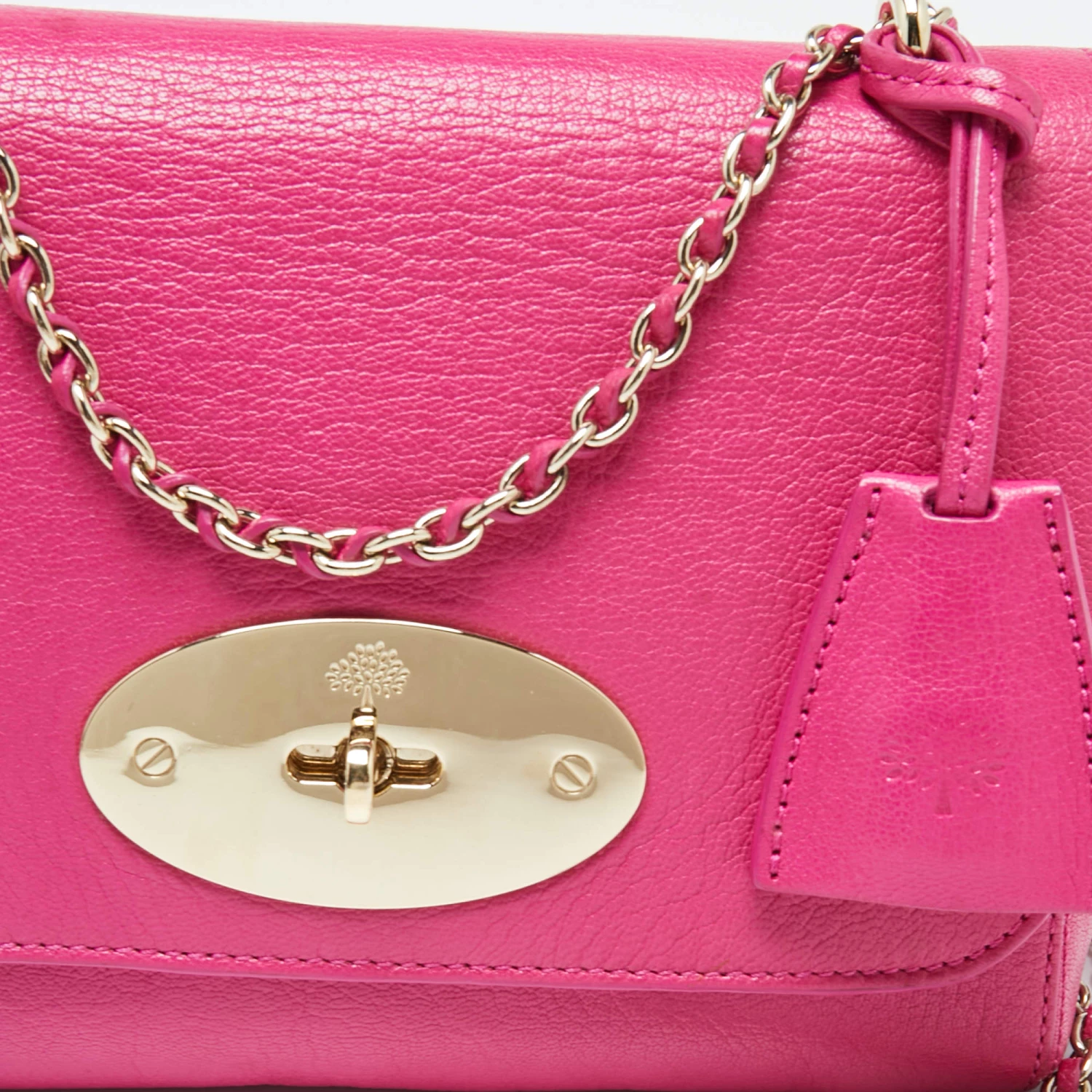 This Mulberry Lily shoulder bag is effortlessly elegant and will match any outfit. It features a sliding chain strap and a fuchsia leather exterior. The popular Postman lock-in gold-tone hardware sits on the flap and the spacious interior is lined with suede.
