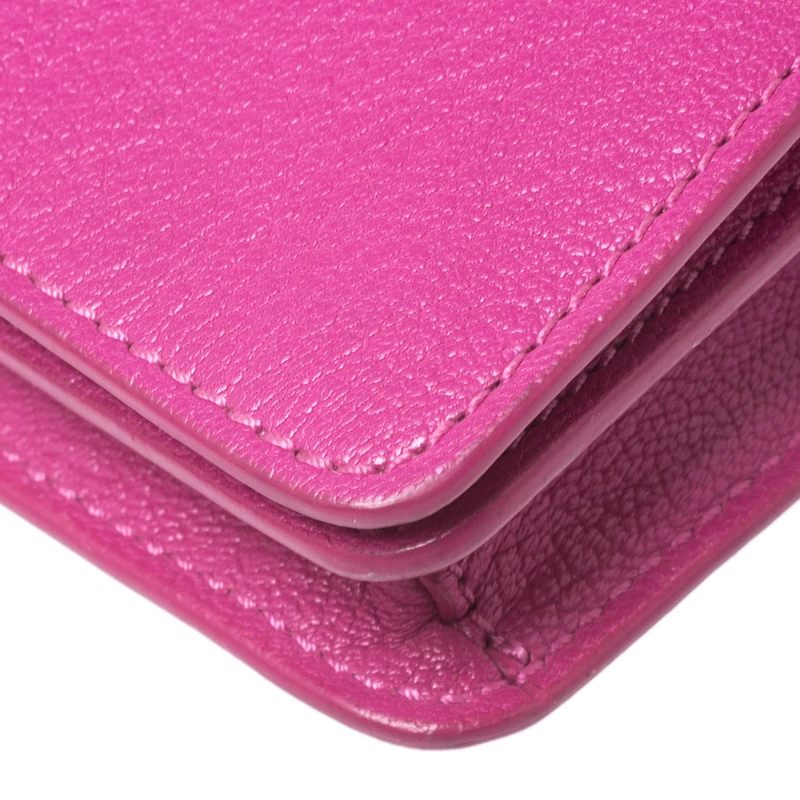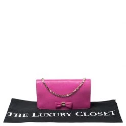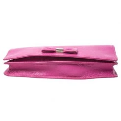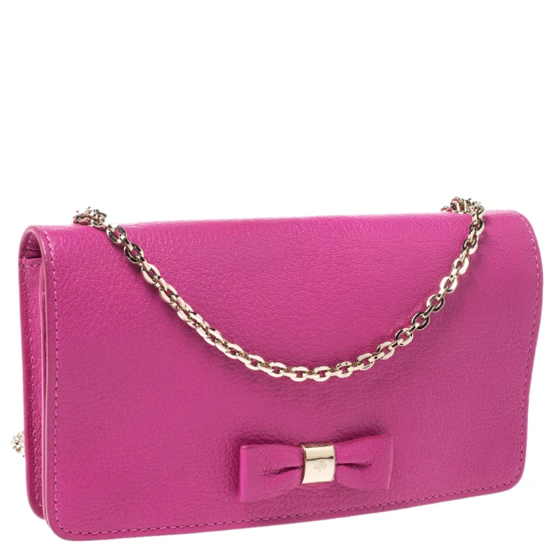 Get this pretty and functional bag from Mulberry. Crafted from pink leather, it has been styled with a bow on the front flap and gold-tone hardware. It also features a chain-link shoulder strap and a spacious fabric-lined interior. This is definitely one handy bag that deserves to be yours.