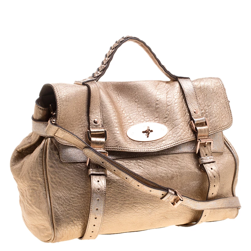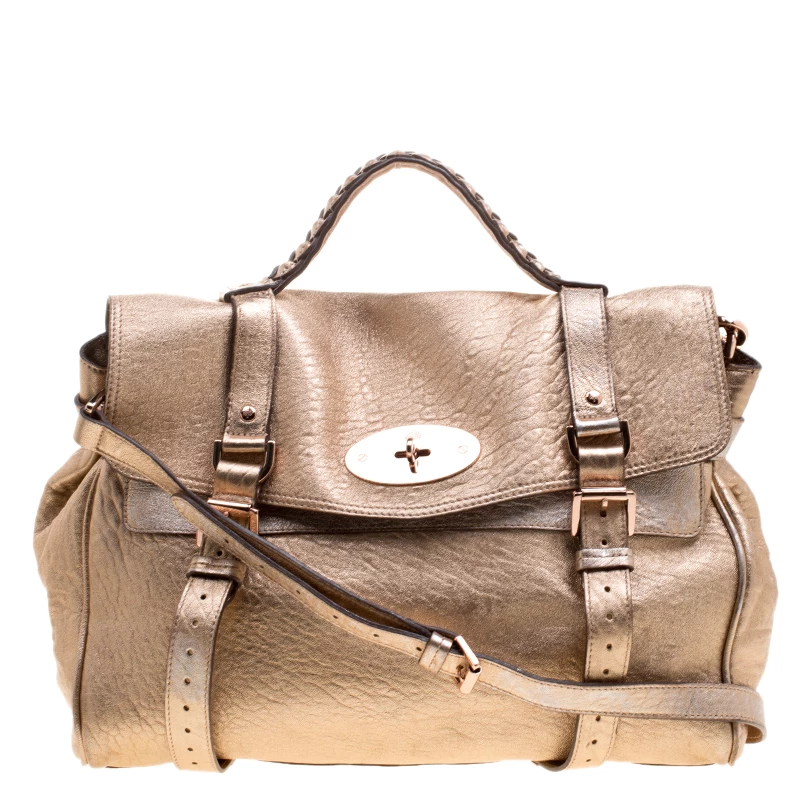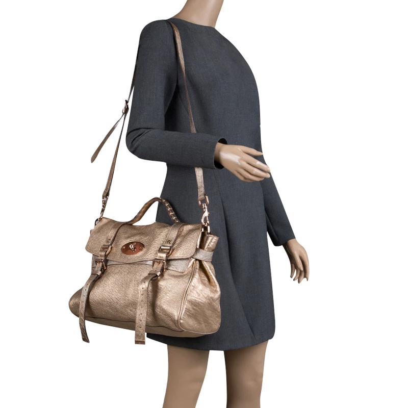 Mulberry brings you this handy bag that will dutifully support you wherever you go. It has been crafted from leather and lined with fabric on the insides. The bag has a flap that reveals a well-sized interior capable of holding all your necessities. It is held by a single handle and a detachable shoulder strap.