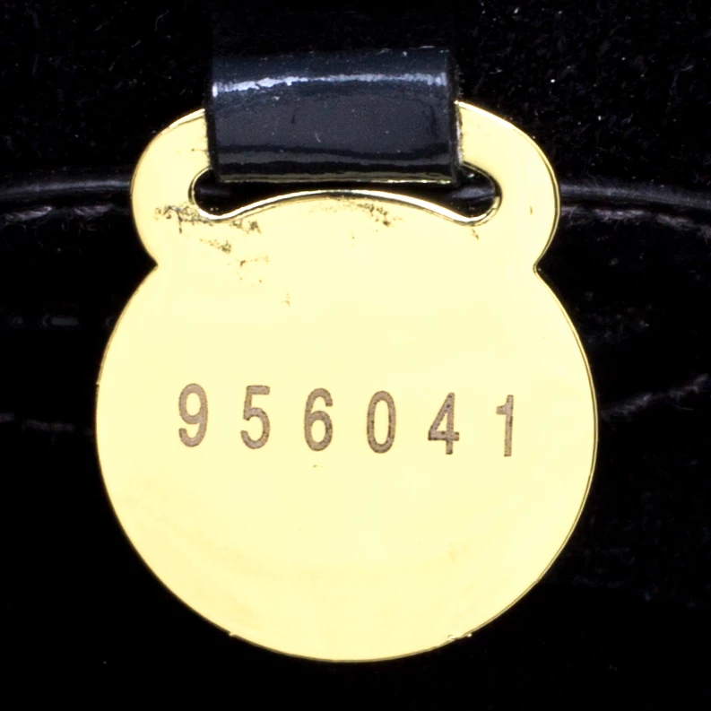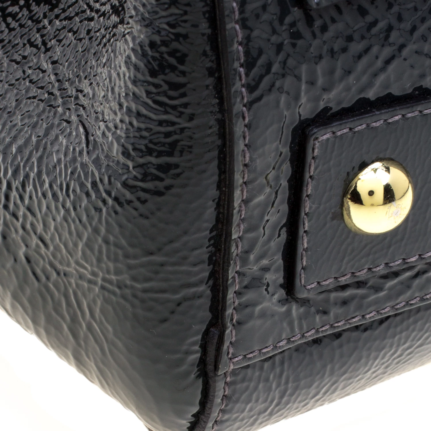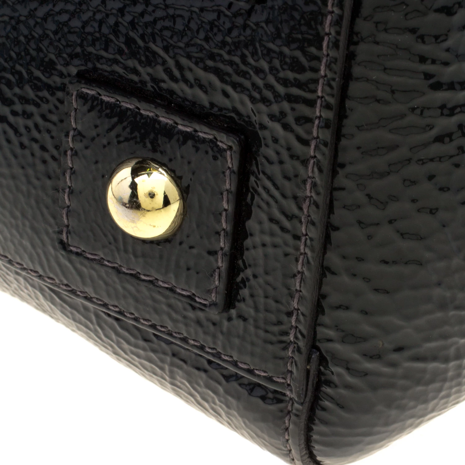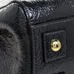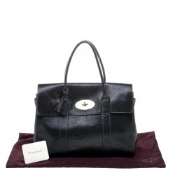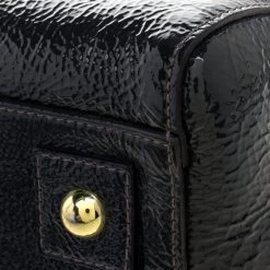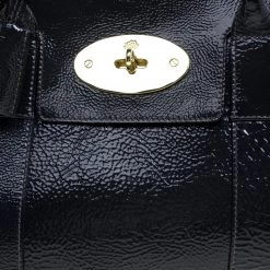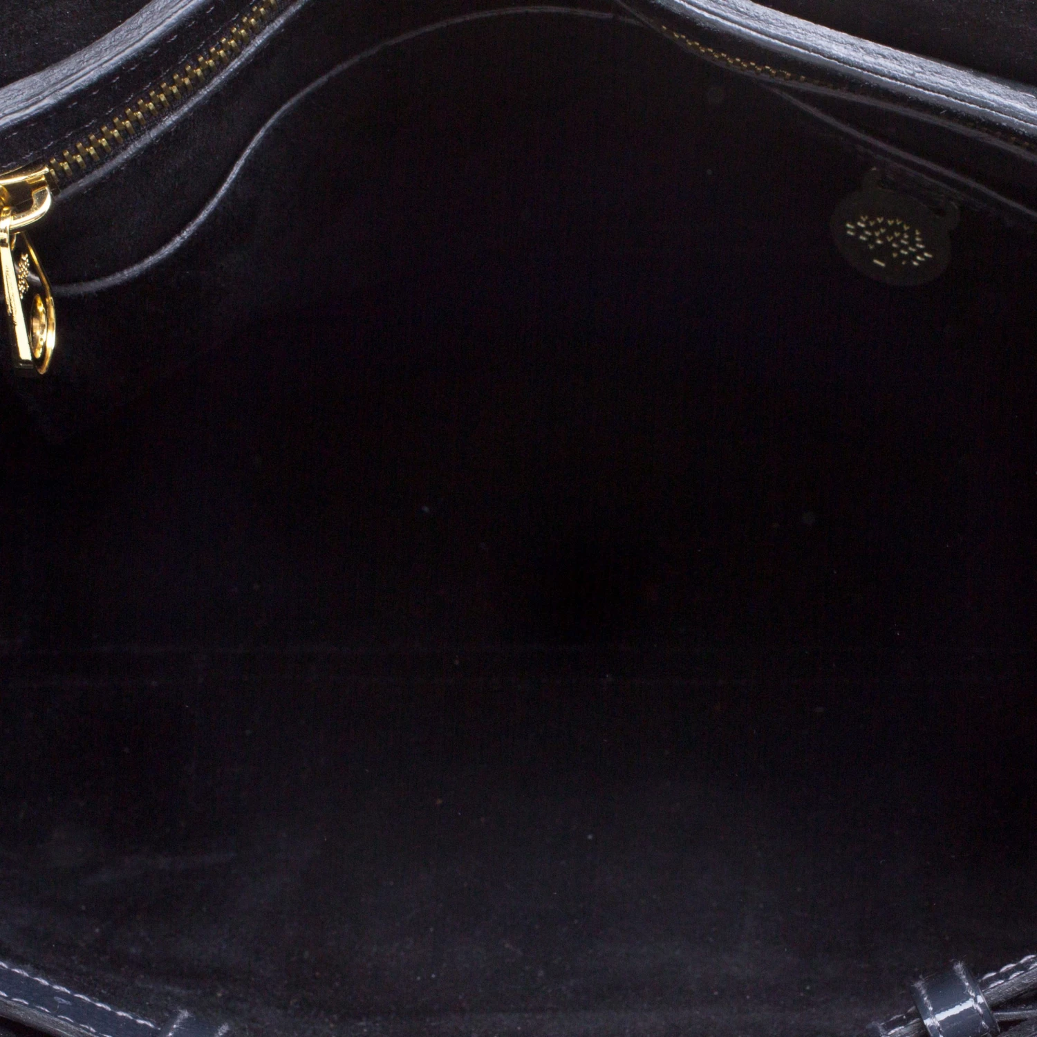 Satchels like these are hard to come by, so quickly grab one when you can. Crafted from patent leather, this Mulberry bag is equipped with dual top handles, a leather tag, and protective metal feet at the bottom. The turn lock closure opens to a spacious suede lined interior that houses a zip pocket and two slip pockets.