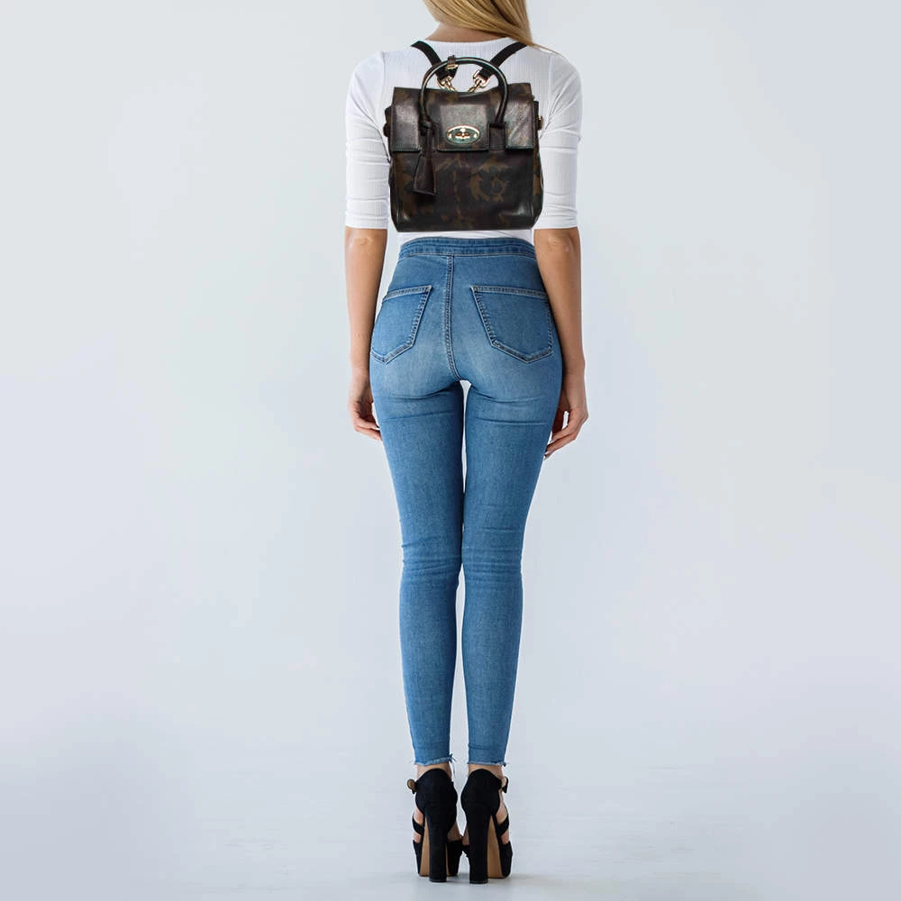Designed in an ever-stylish camo leather, this Mulberry Delevinge backpack is a versatile piece to add to your collection. It comes with a flap style and is detailed with gold-tone hardware. It comes with top handles and two shoulder straps. Carry all your essentials in the suede-lined interior of this bag.