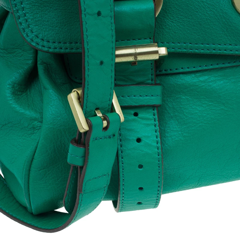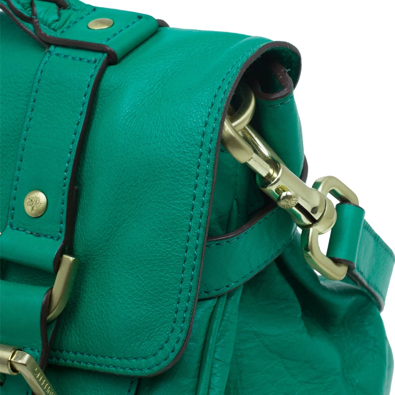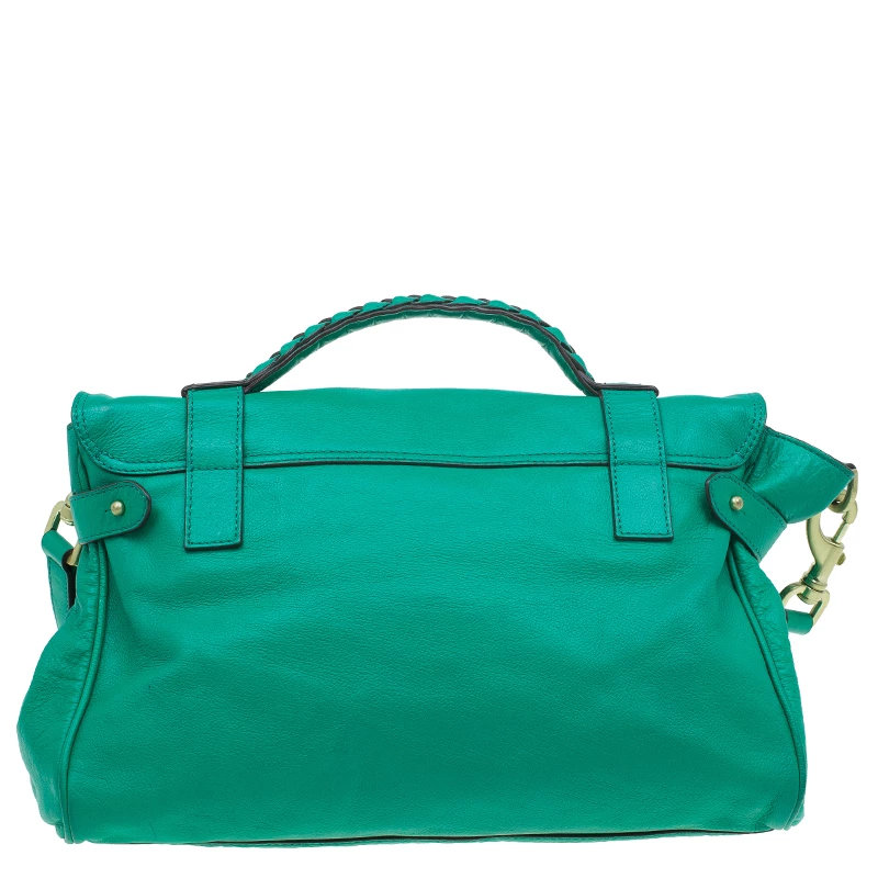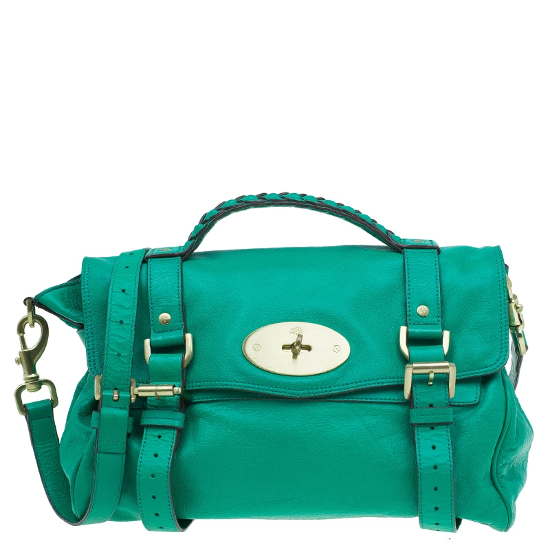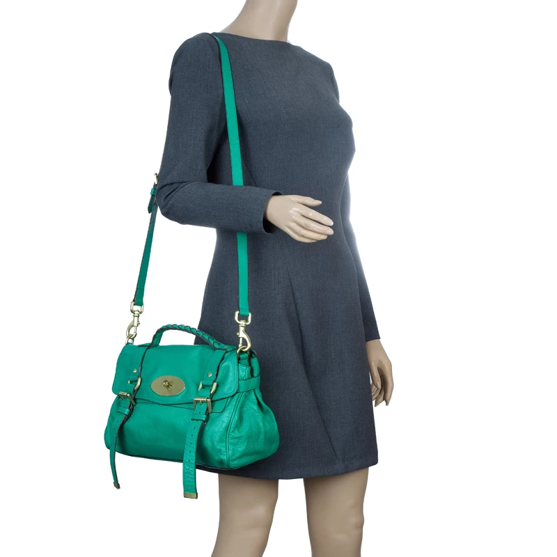Named after the beautiful model Alexa Chung, this bag by Mulberry is infused with her London Chic style. It is crafted from smooth green leather and features a braided top handle, a detachable shoulder strap and a front gold-tone Mulberry twist lock plaque. The fabric lined interior houses one zipped pocket.