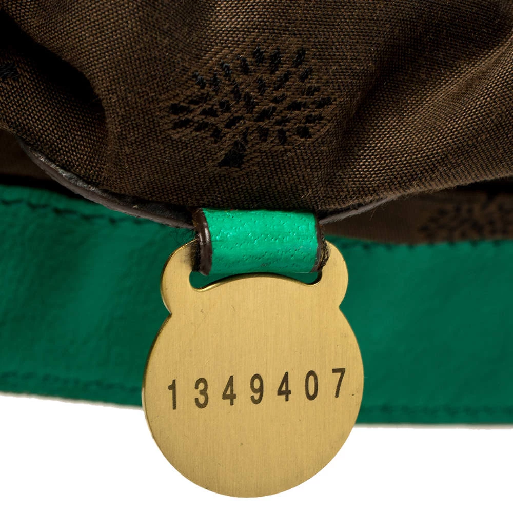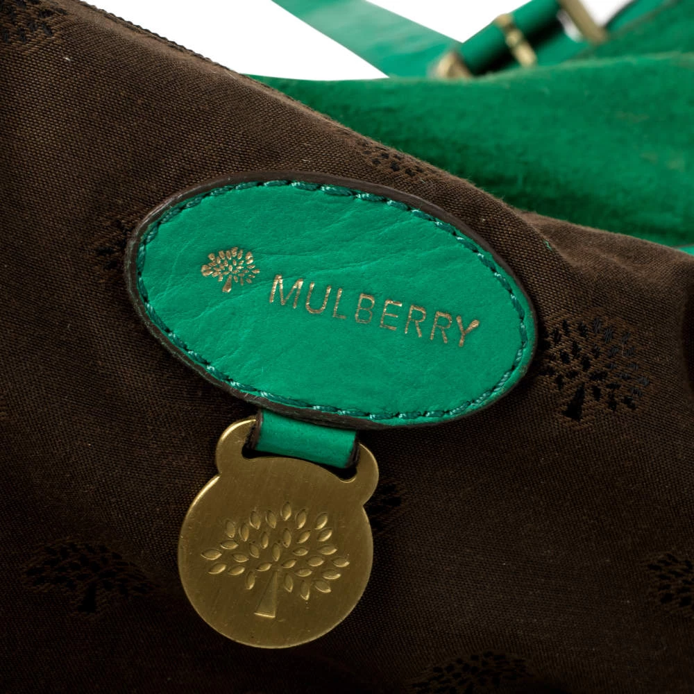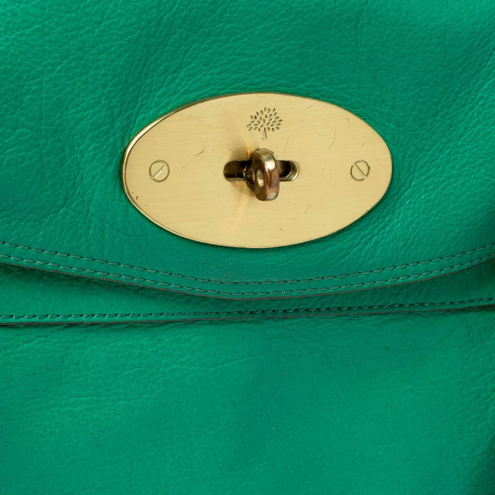 Mulberry brings you this handy bag that will dutifully support you wherever you go. It has been crafted from quality leather in green and equipped with a twist lock on the flap that secures a spacious fabric interior capable of holding all your necessities. It is held by a single handle and a detachable shoulder strap.