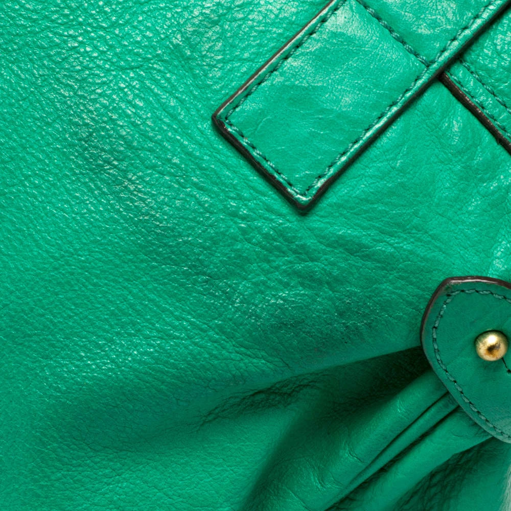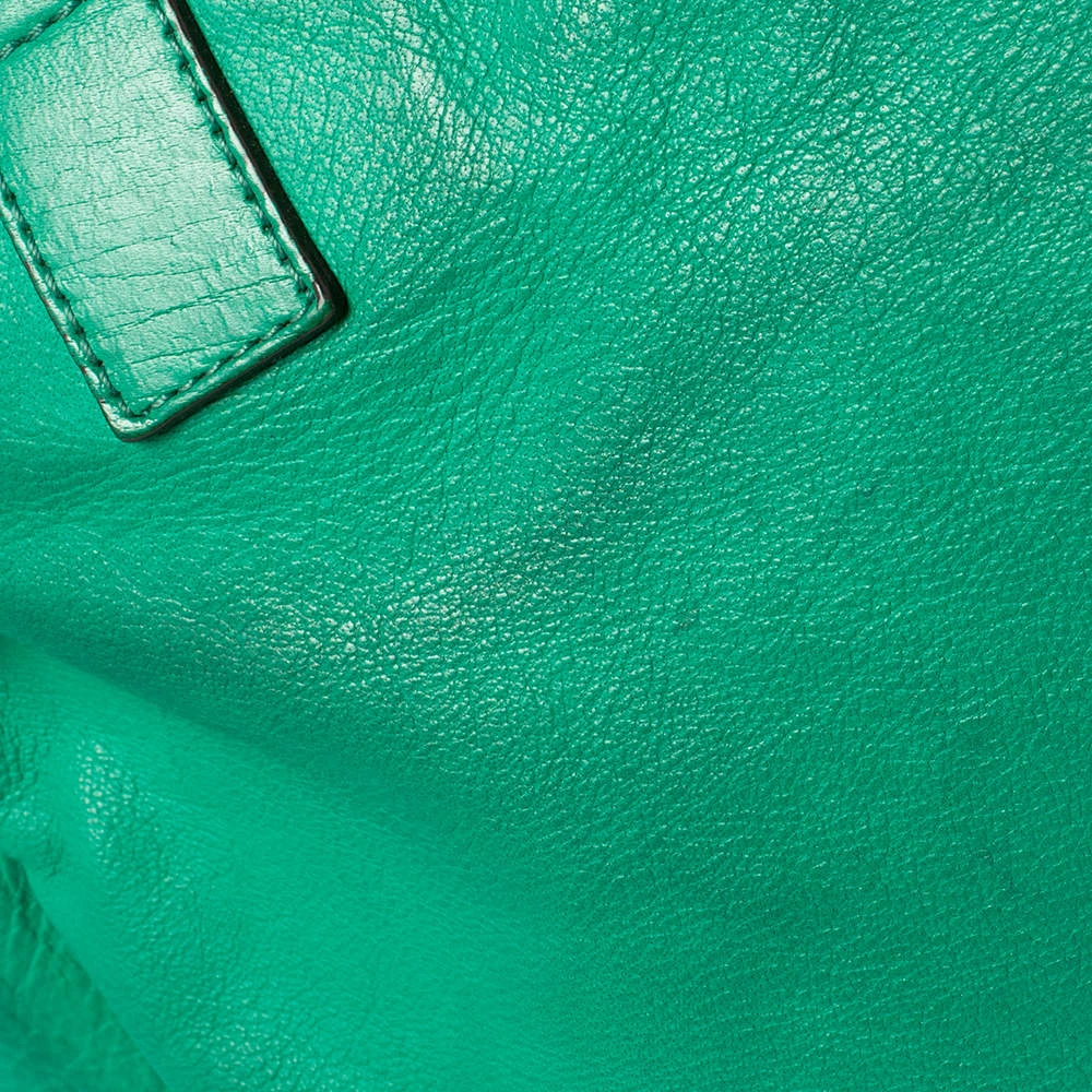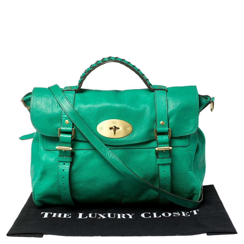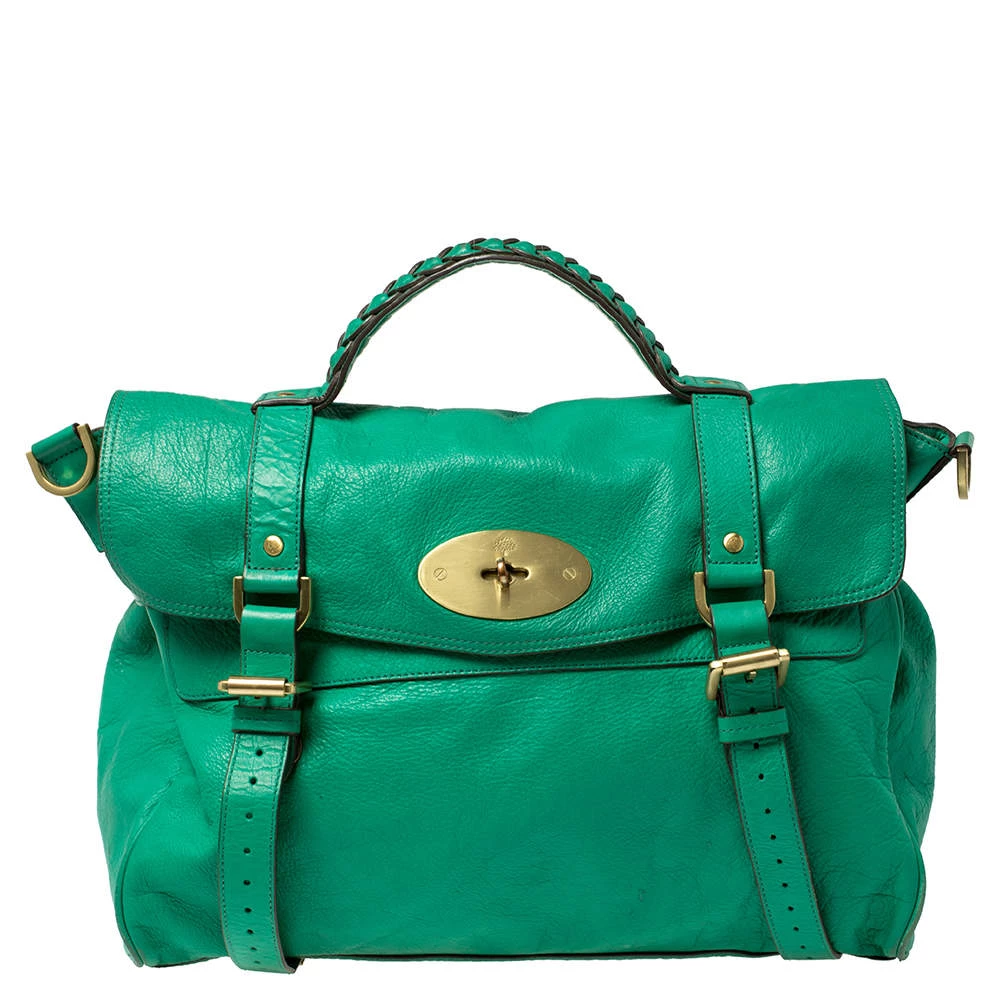 Mulberry brings you this handy bag that will dutifully support you wherever you go. It has been crafted from quality leather in green and equipped with a twist lock on the flap that secures a spacious fabric interior capable of holding all your necessities. It is held by a single handle and a detachable shoulder strap.