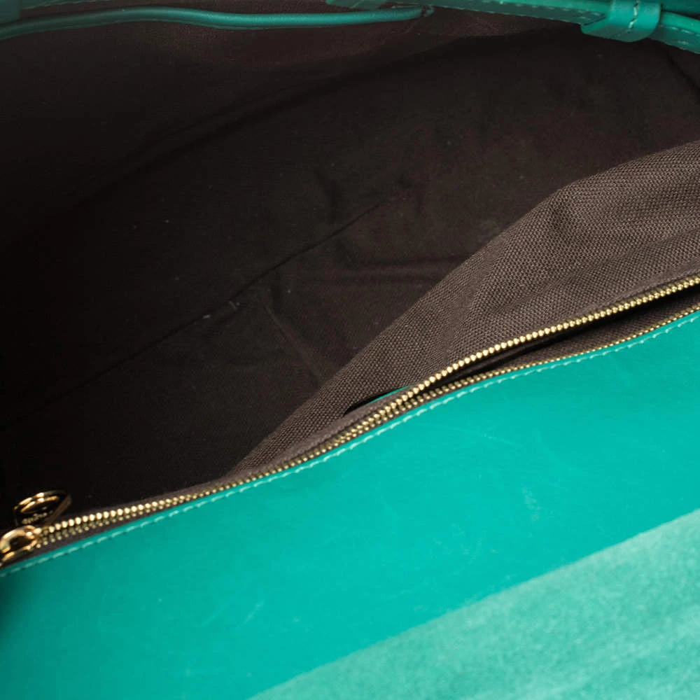 This versatile and practical bag from Mulberry is a must-have. Crafted from green leather, this feminine bag features gold-tone hardware and a front flap that opens to a canvas-lined interior. With a single top handle and a detachable shoulder strap, this bag is easy to parade and is indeed investment-worthy!