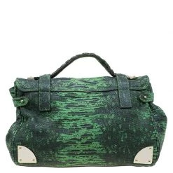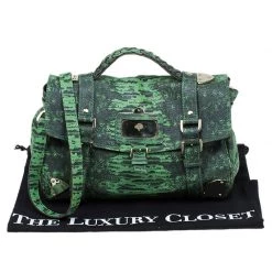 โAlexa’ is the hybrid of two Mulberry styles- Bayswater and Elkington. Constructed in a relaxed and slightly slouch silhouette, this Alexa bag features a green lizard embossed leather. Decorated with golden accents, two magnetic snap buckles and the logo plaque on the front flap, this cool satchel can be carried anywhere. Carry yours by the braided top handle or the shoulder strap.