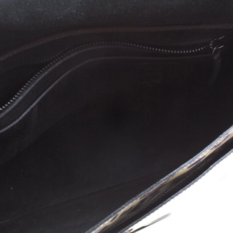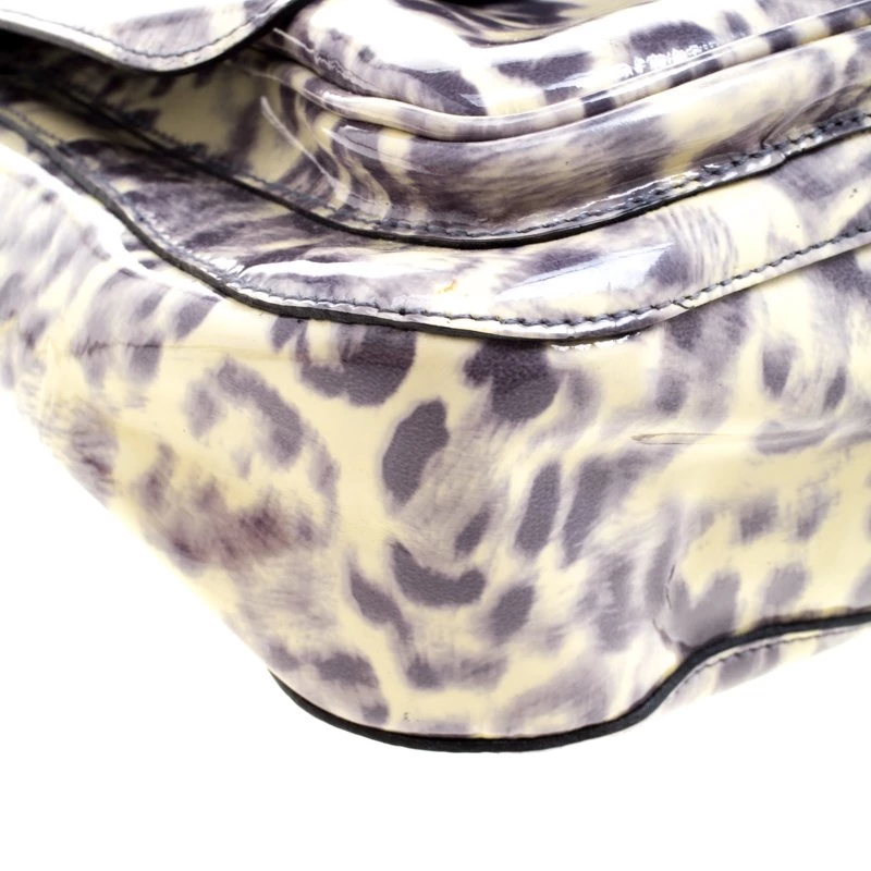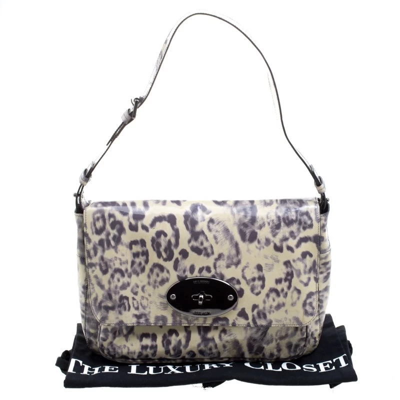 Shoulder bags from Mulberry are hard to come by, so invest in one when you can. Crafted from leopard print patent leather, the bag is equipped with an adjustable handle. The front flap has a turn lock closure that opens to suede lined interior housing a zipped pocket.