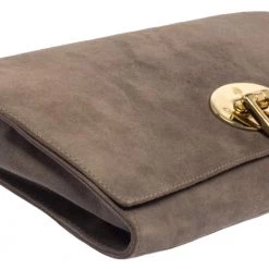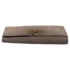 This clutch is a suave creation from the extraordinary house of Mulberry. The suede design of this oversized imparts a sophisticated charm to your look. It features a lock-accented flap that opens to a fabric-lined interior. It is finished with gold-tone hardware.