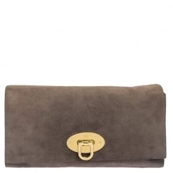 This clutch is a suave creation from the extraordinary house of Mulberry. The suede design of this oversized imparts a sophisticated charm to your look. It features a lock-accented flap that opens to a fabric-lined interior. It is finished with gold-tone hardware.
