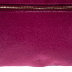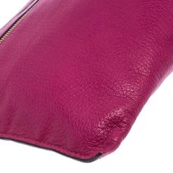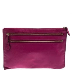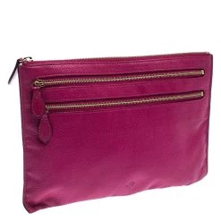 Made from hot pink leather, this pouch from Mulberry is a creation worthy of being yours. It has a simple structure with a top zipper that leads to a fabric interior for your little essentials. The pouch is also equipped with twin zipper pockets to the front.