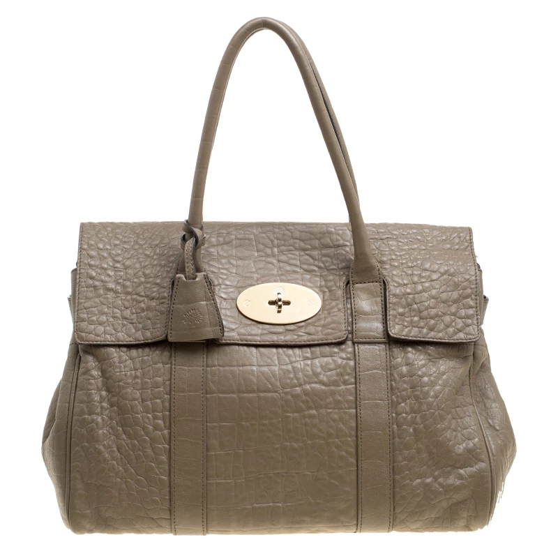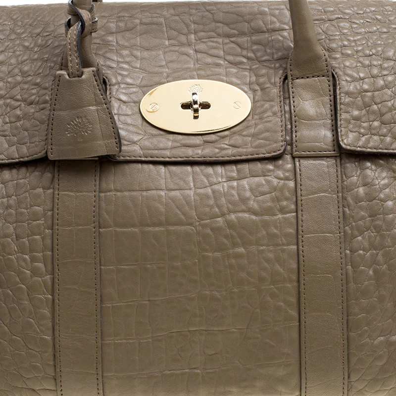 Satchels like these are hard to come by, so quickly grab one when you can. Crafted from leather, this Mulberry bag is equipped with dual top handles, a leather tag and protective metal feet at the bottom. The turn lock closure opens to a spacious suede lined interior that houses a zip pocket.