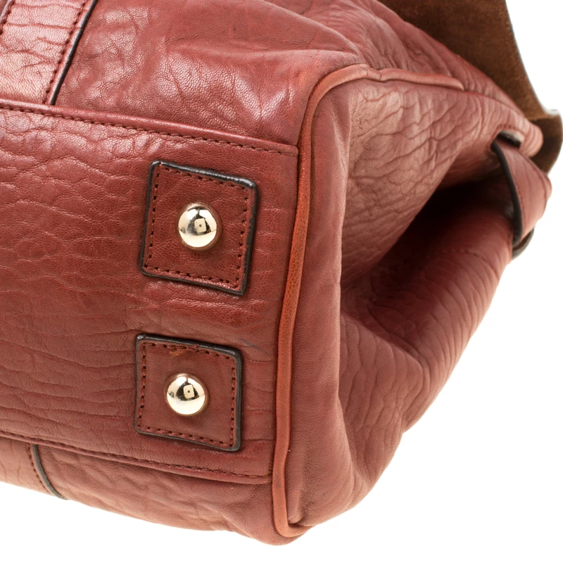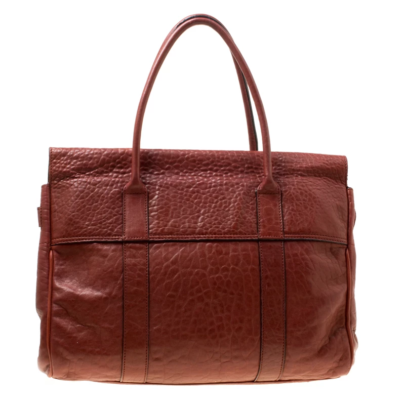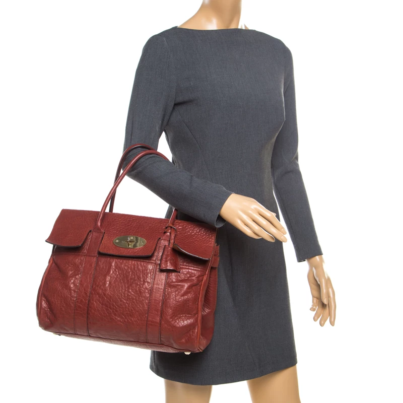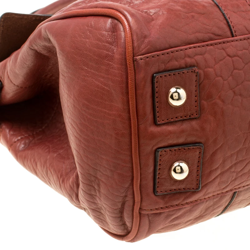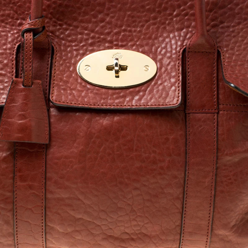 Satchels like these are hard to come by, so quickly grab one when you can. Crafted from textured leather, this Mulberry bag is equipped with dual top handles, a leather tag and protective metal feet at the bottom. The turn lock closure opens to a spacious suede lined interior that houses a zip pocket and two slip pockets.