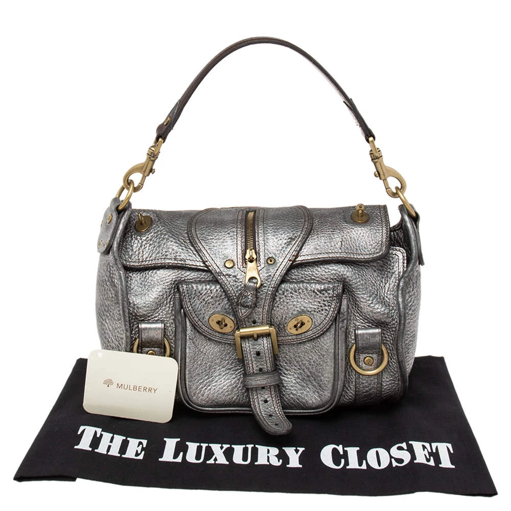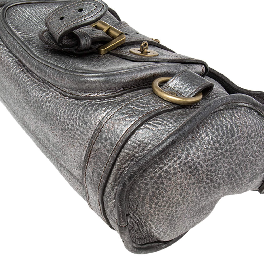 Like every other creative design of Mulberry, this bag also embodies skilled craftsmanship and practicality. Made from textured leather on the exterior, it has been highlighted with brass-tone accents and a belt detailed closure at the front. Added with several pockets on the exterior and given a spacious suede interior, it makes for an ideal everyday accessory.