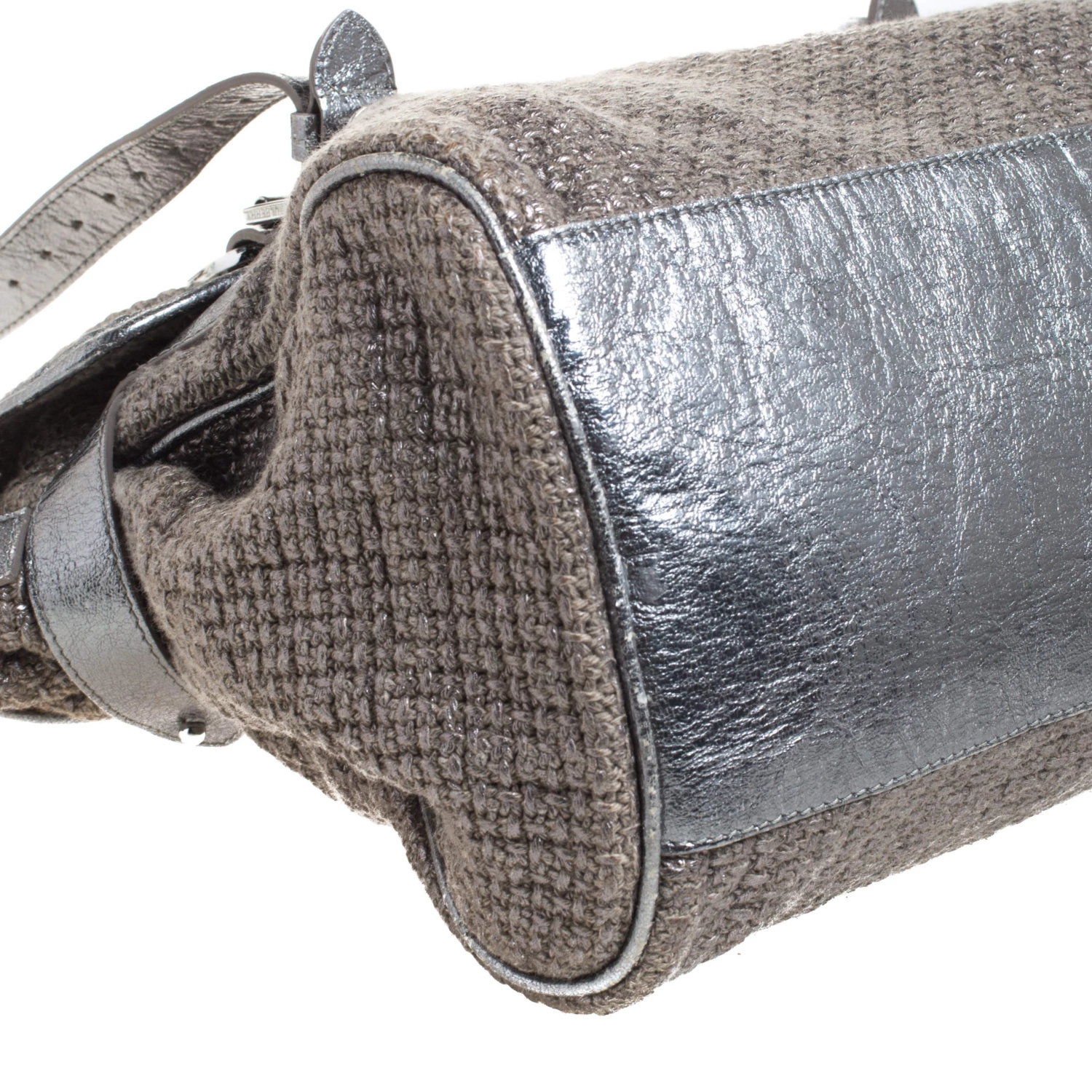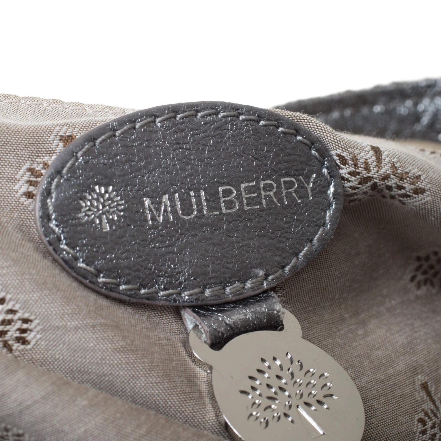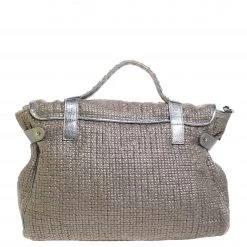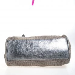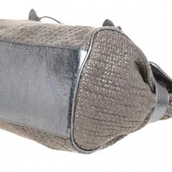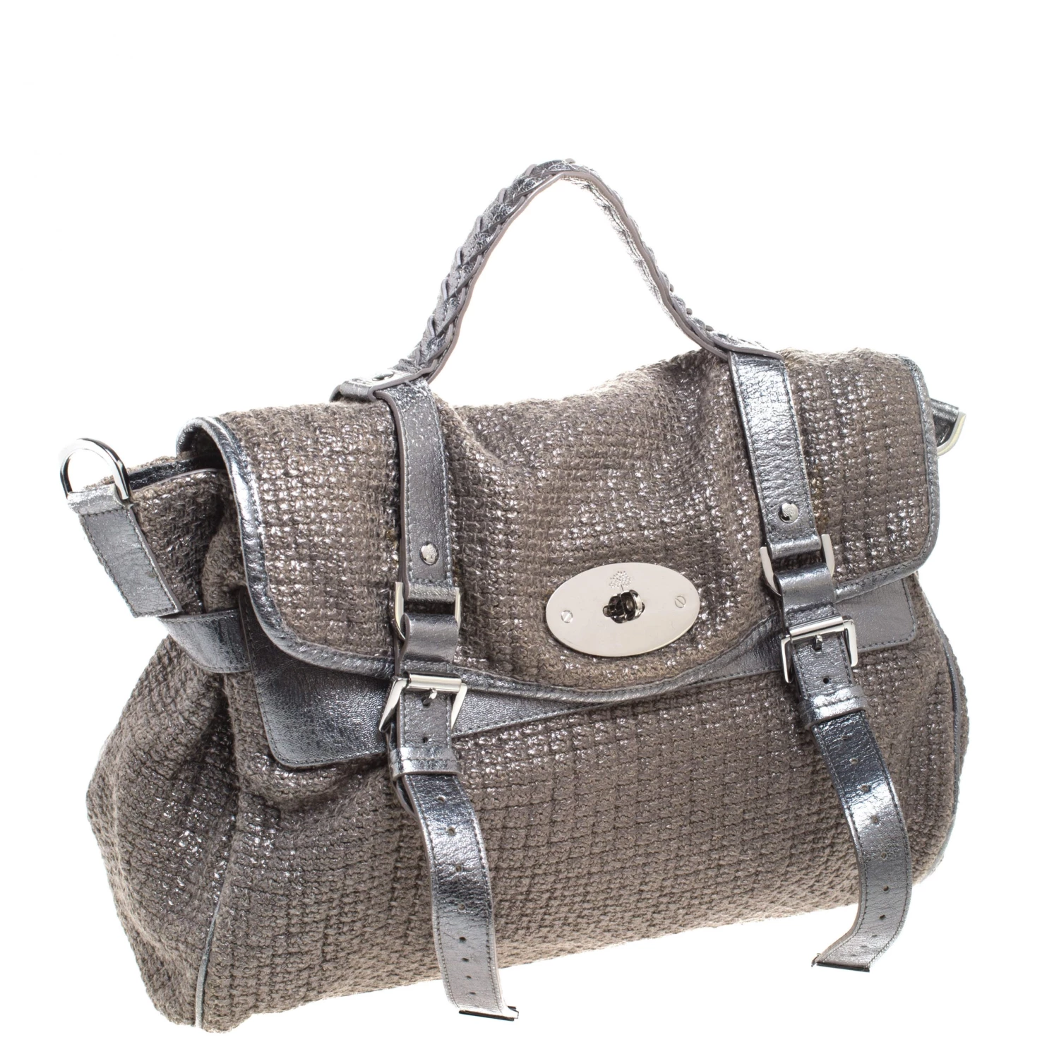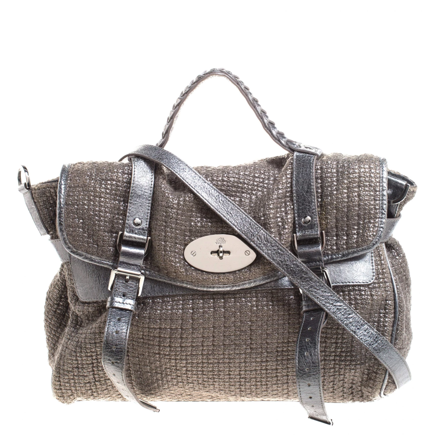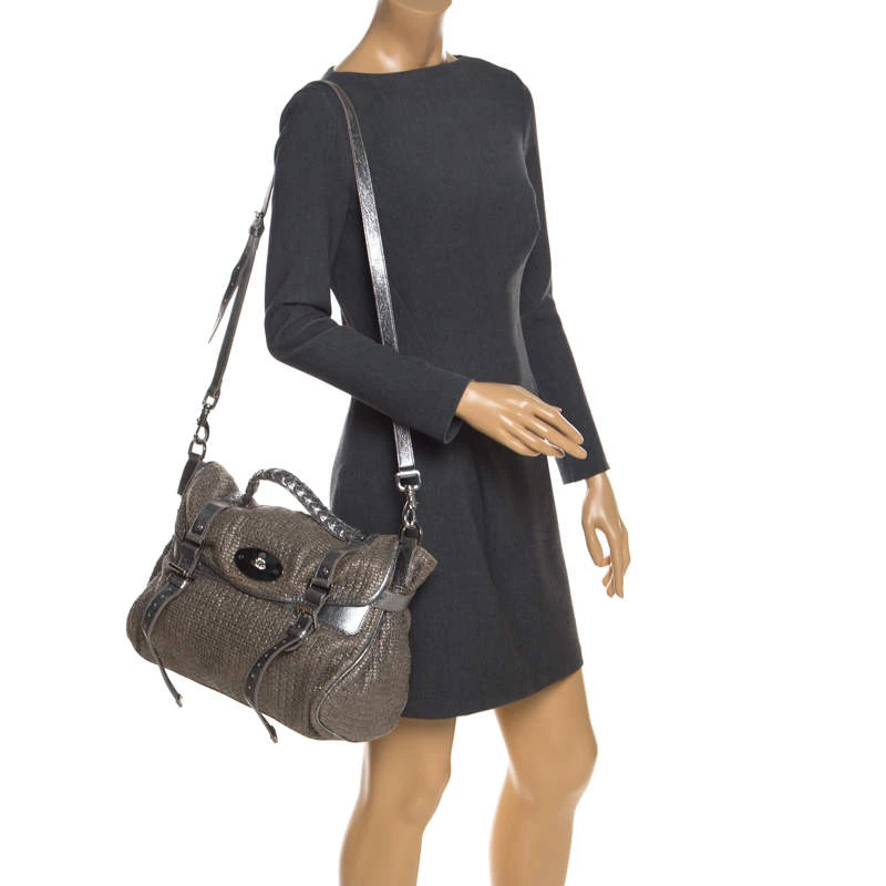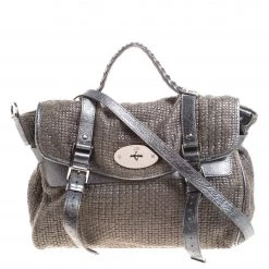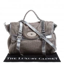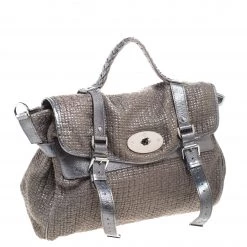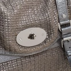 Mulberry brings you this handy bag that will dutifully support you wherever you go. It has been made from woven fabric and leather and equipped with a twist lock on the flap that secures a spacious fabric interior capable of holding all your necessities. Lastly, it is held by a single handle and a detachable shoulder strap. This metallic bag is finished with silver-tone hardware.