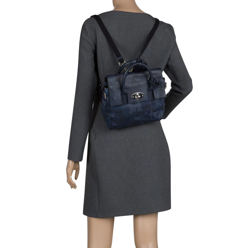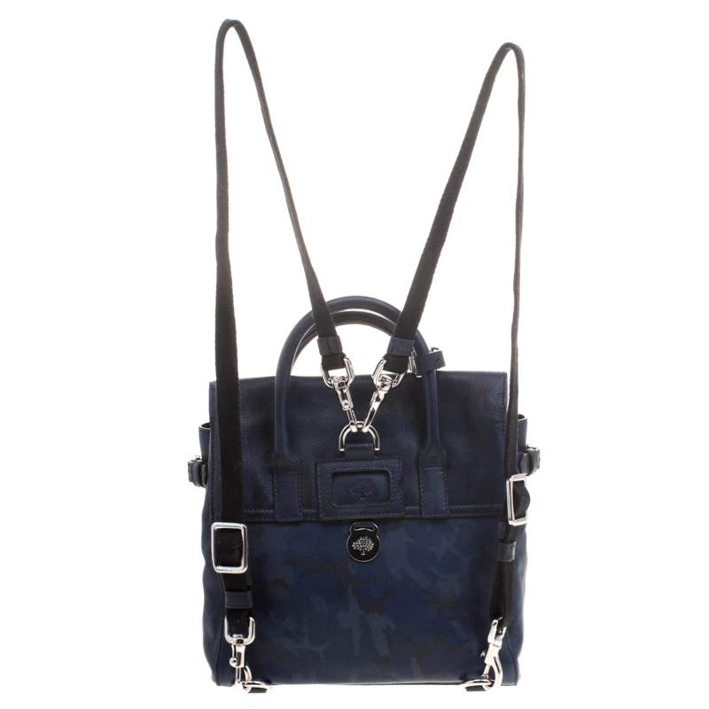 This stylish bag from Mulberry is from Cara Delevingne’s collection. Versatile in design it comes with dual rolled handles and removable shoulder straps. Crafted from blue camo print leather the front flap is secured by a twist lock. The interior is suede lined and has a zip pocket. This backpack is perfect for everyday use.