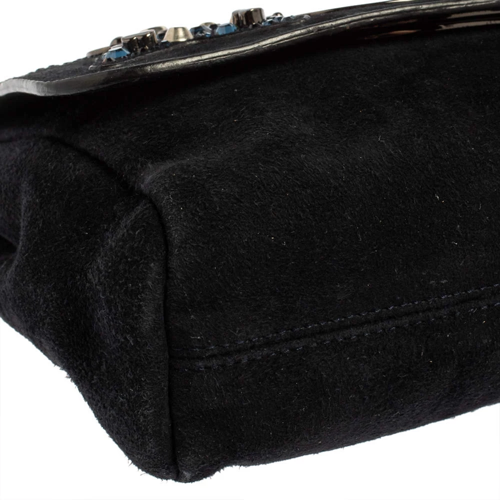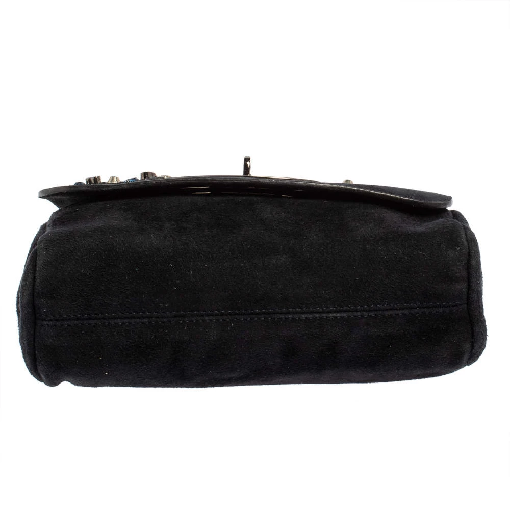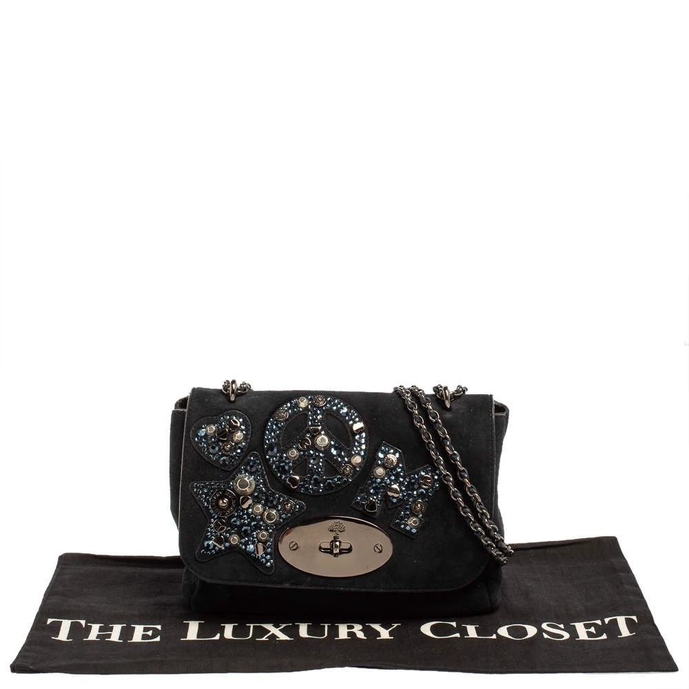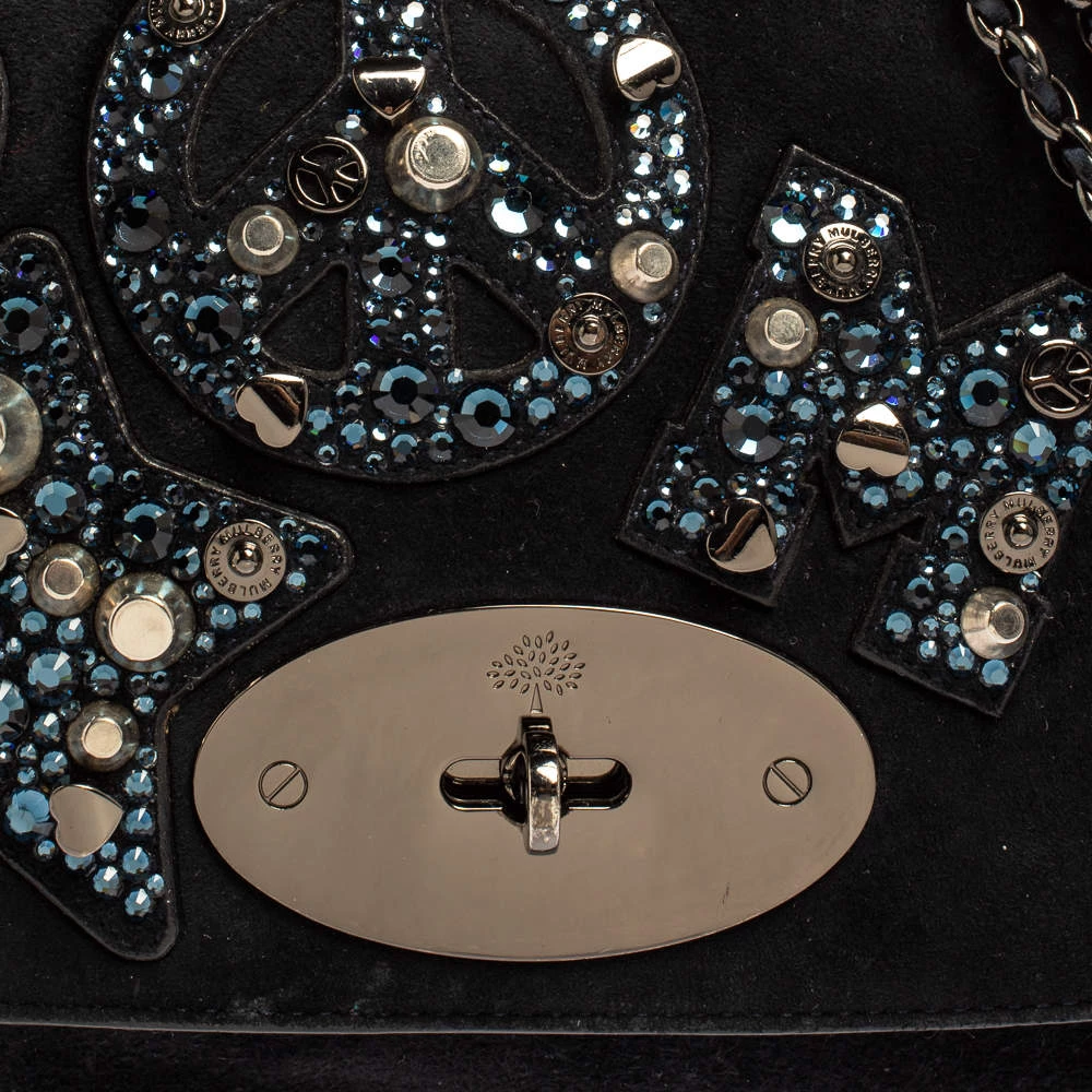 This Mulberry Lily bag is lovely. Crafted from suede, the blue bag comes with a chain and leather woven strap, a postman’s lock on the flap, pretty embellishments on the front flap, and a suede-lined interior. It is ideal for special events.