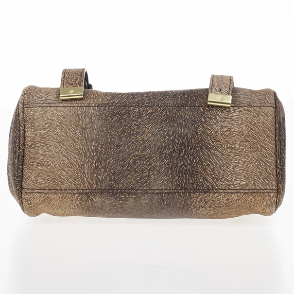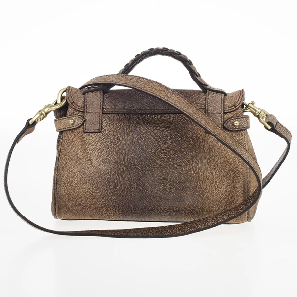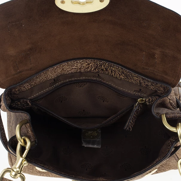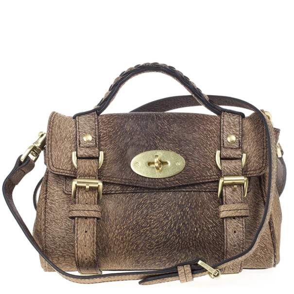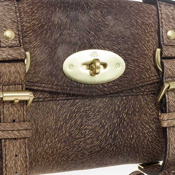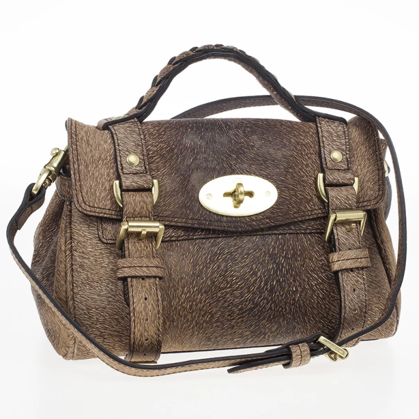Named after the beautiful model, Alexa Chung, this bag by Mulberry is infused with her London Chic style. It is crafted from mock fur printed leather and features a braided top handle, a detachable shoulder strap and a front gold-tone Mulberry twist lock plaque. The suede and monogram fabric lined interior houses one patch pocket and one zip pocket.Original Retail Price: US $1,071