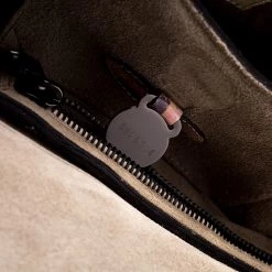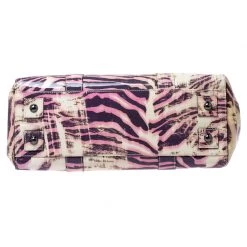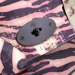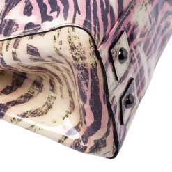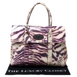 Satchels like these are hard to come by, so quickly grab one when you can. Crafted from tiger print patent leather, this Mulberry bag is equipped with dual top handles, a leather tag and protective metal feet at the bottom. The turn lock closure opens to a spacious suede lined interior that houses a zip pocket.