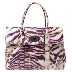 Satchels like these are hard to come by, so quickly grab one when you can. Crafted from tiger print patent leather, this Mulberry bag is equipped with dual top handles, a leather tag and protective metal feet at the bottom. The turn lock closure opens to a spacious suede lined interior that houses a zip pocket.