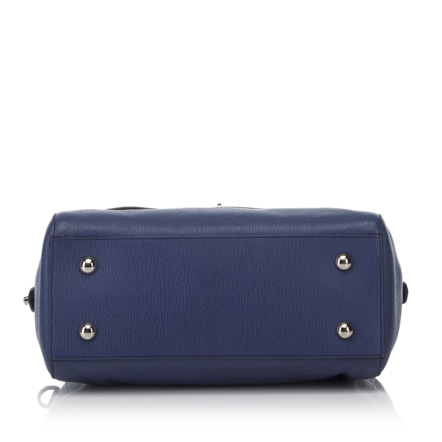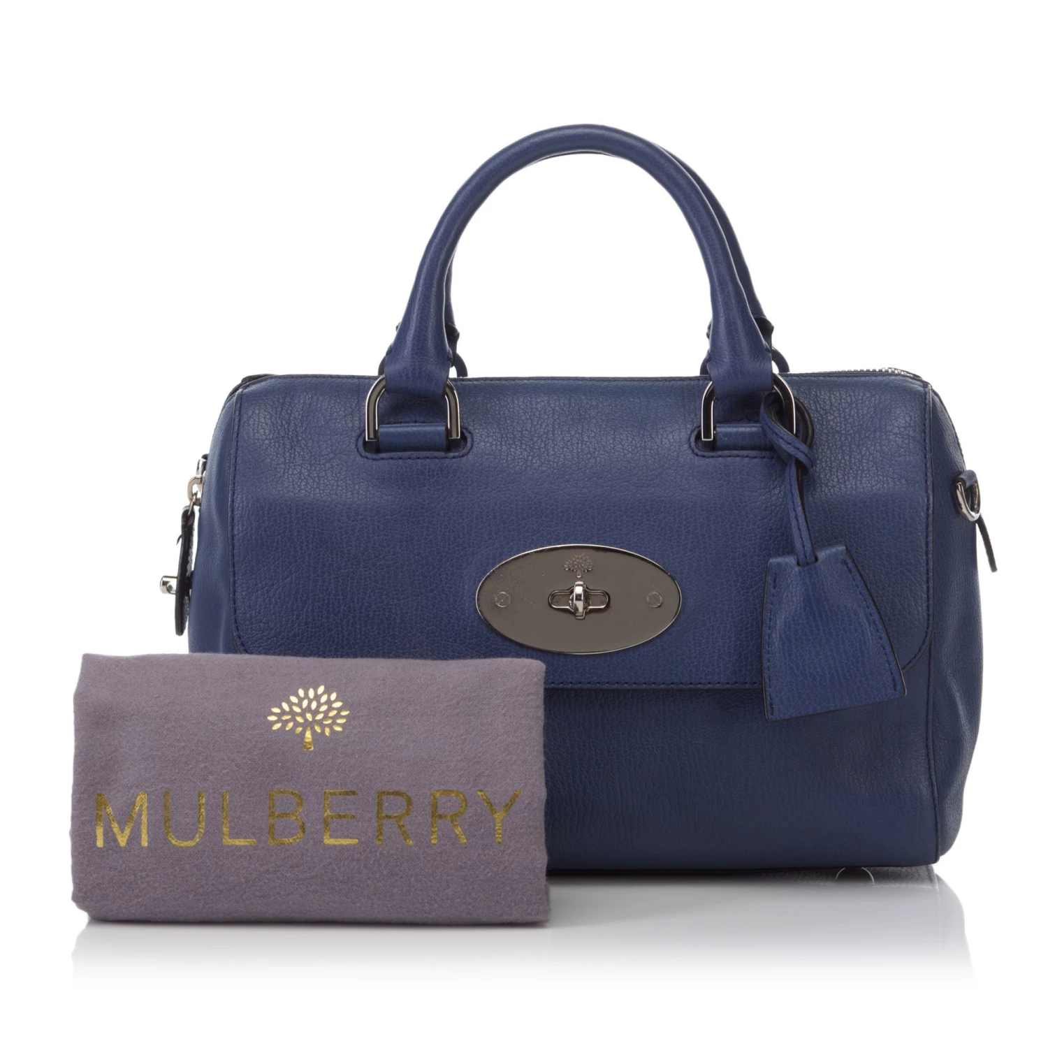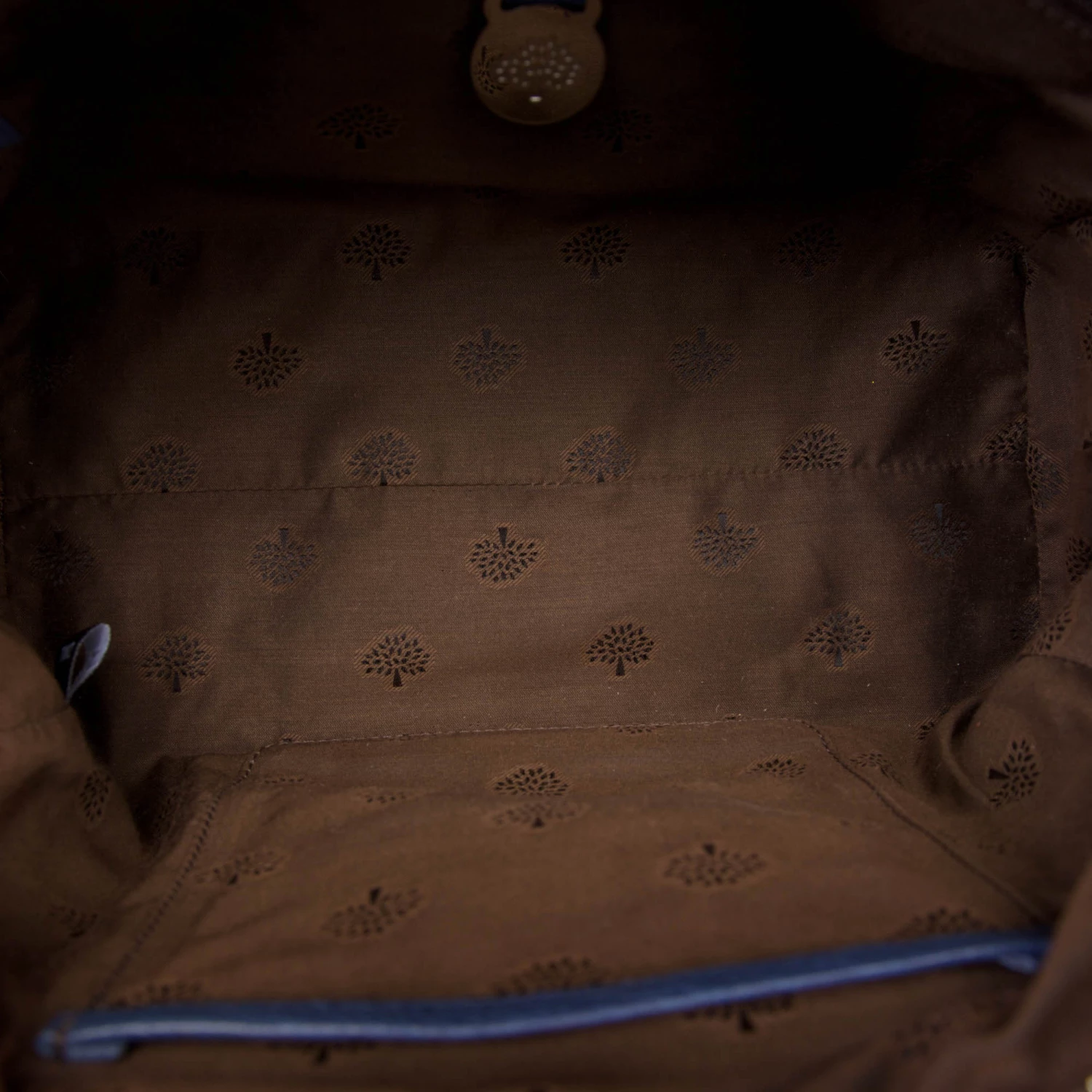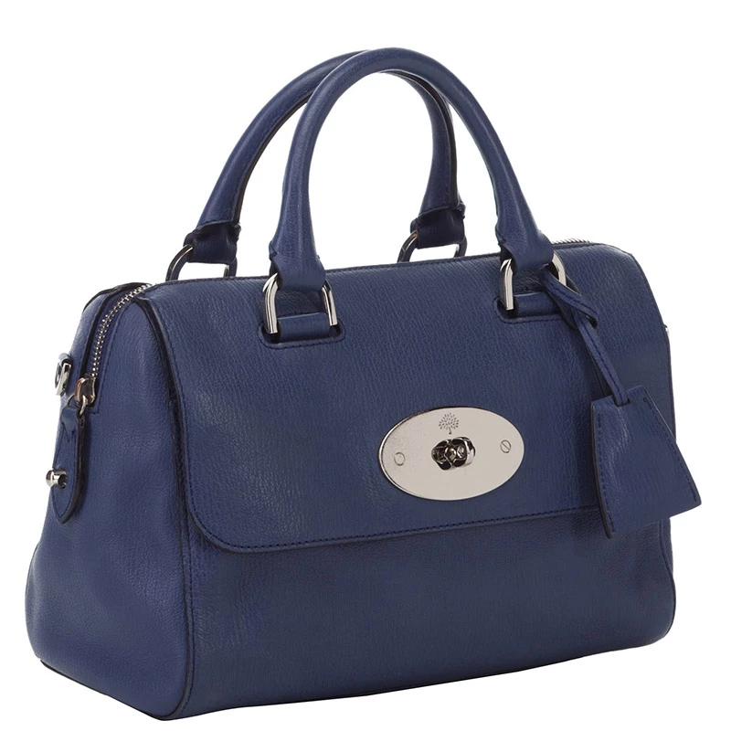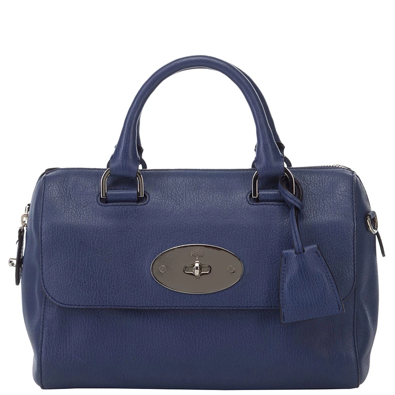 This gorgeous accessory from Mulberry features durable grained leather in a gorgeous shade of blue. The Del Rey features two comfortable rolled leather handles for carrying and an exterior flap pocket with a silver tone metal turn-lock closure. The interior is amply spacious for holding your daily essentials with ease.