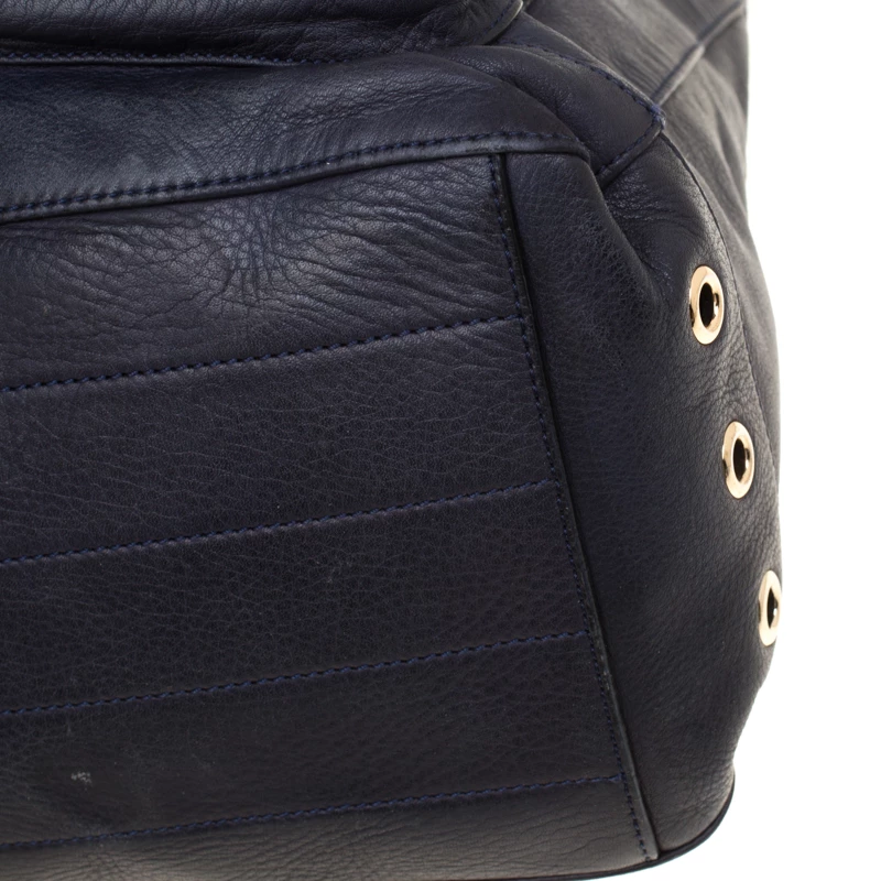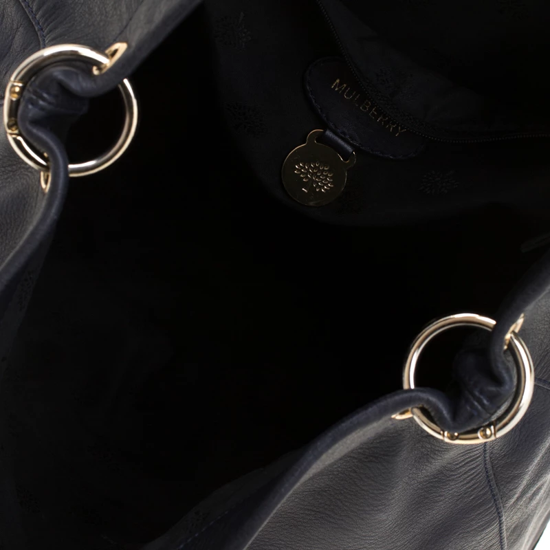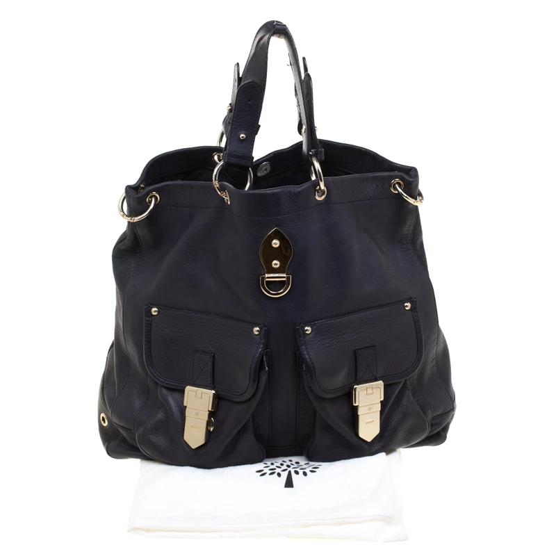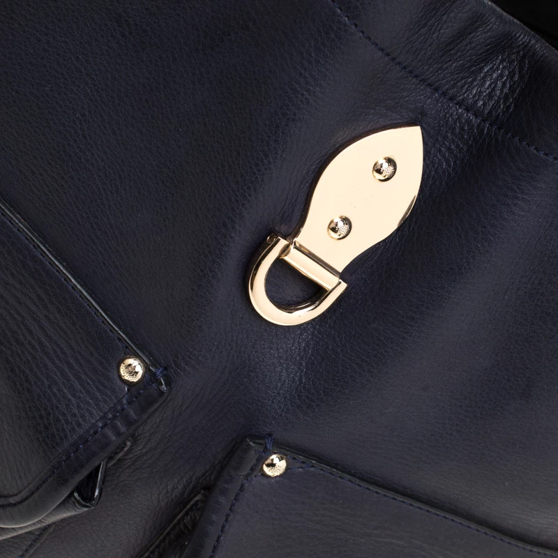 This fabulous Mulberry Tillie bag is sure to make you stand out and will grab you all the compliments! The navy blue creation is crafted from leather and has been styled with two front flap pockets detailed with gold-tone buckle closure. It comes equipped with dual top handles, a detachable shoulder strap and a fabric lined spacious interior that can easily carry all your daily essentials. This is one piece that definitely needs to be on your wishlist!