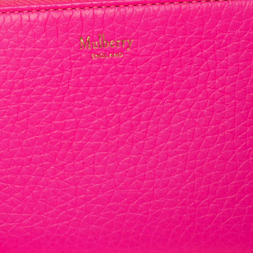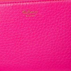 This zip wallet from Mulberry has been made using neon pink leather into a simple shape. It has a brand detail on the front and a leather-lined interior that is secured by a top zip closure.