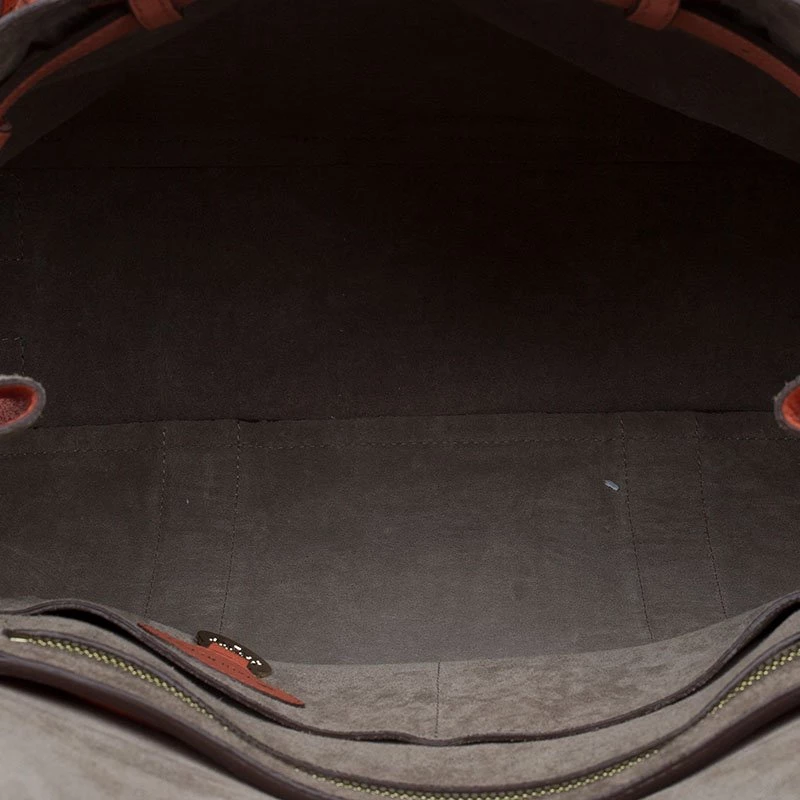 The Bayswater remains one of the iconic creations of the luxury British label- Mulberry. Impeccably designed in an orange leather, this classic structured bag comes with two rolled top handles and finished with tonal stitch detailing. It comes with the iconic Mulberry Tree logo embossed turn-lock and the suede lined interior is ideal to hold your everyday essentials.