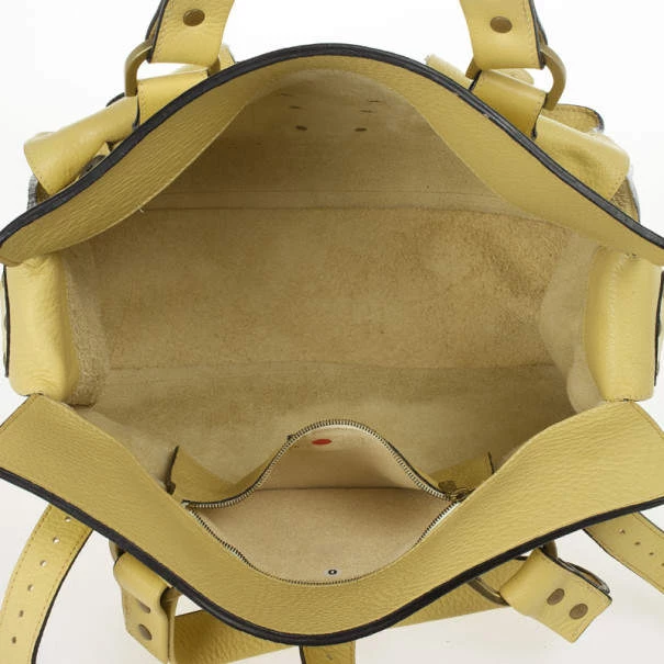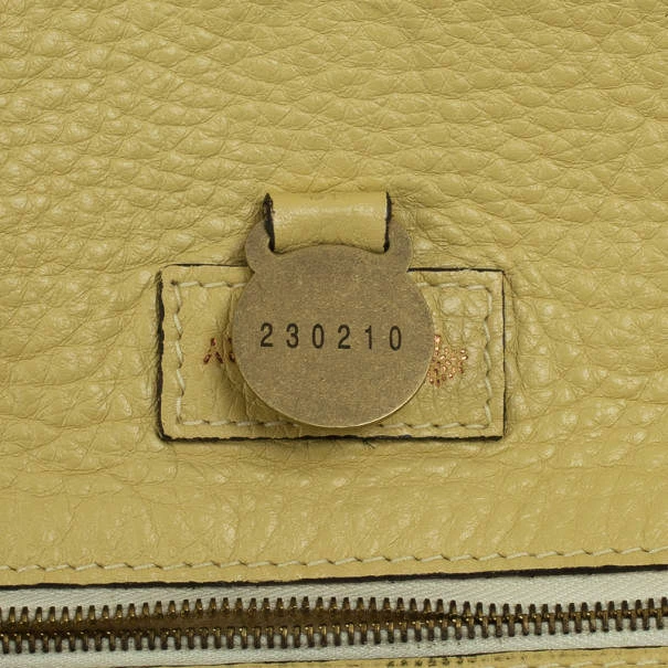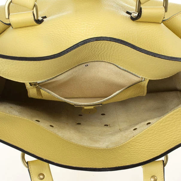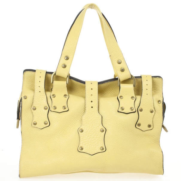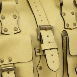 The much loved, but sadly discontinued Roxanne satchel by Mulberry is still a classic. This version is crafted from pale yellow leather that features stud detailing, gold-tone buckles, front pockets and comfortable double handles. The interior is unlined and features a leather pocket with a Mulberry logo charm.Original Retail Price: US $1,045