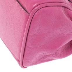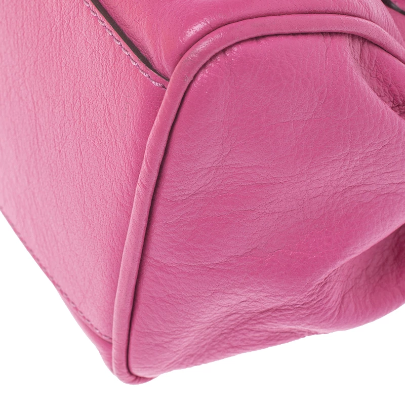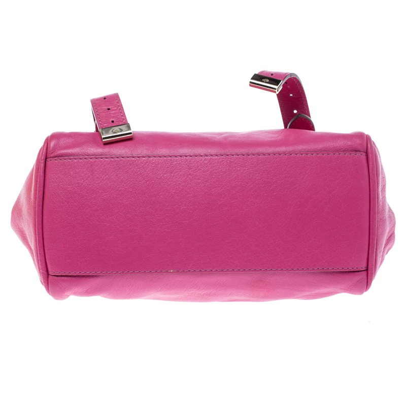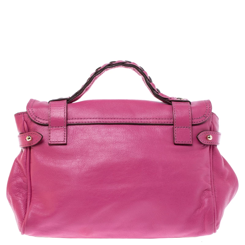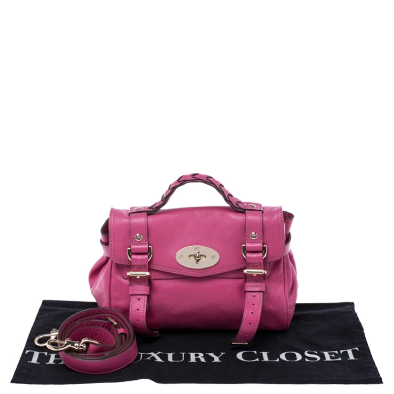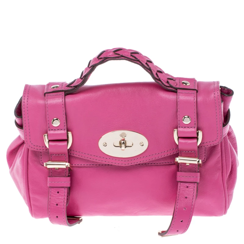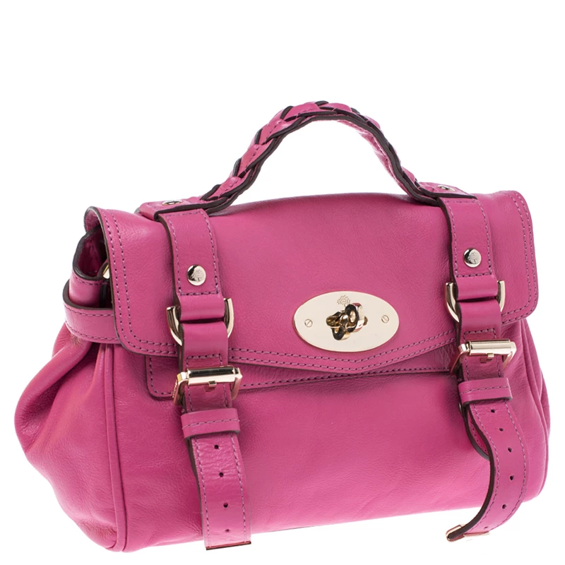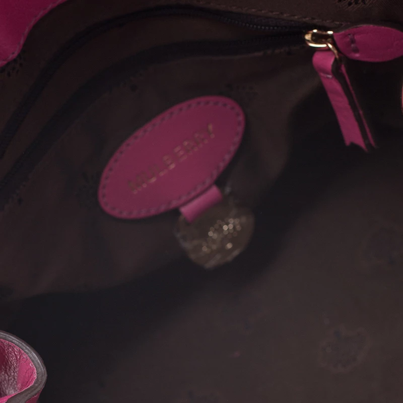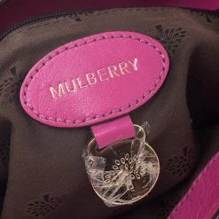 Mulberry brings you this handy bag that will dutifully support you wherever you go. It has been crafted from leather in pink and equipped with a twist lock on the flap that secures a fabric interior capable of holding your necessities. It is held by a single handle and a detachable shoulder strap.
