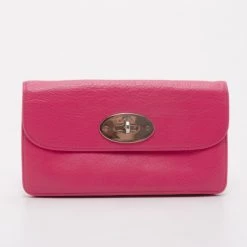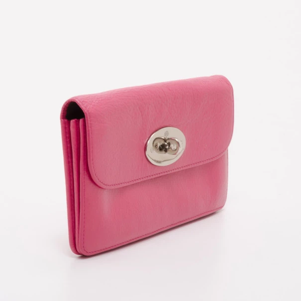 Mulberry Pink Leather Postman’s Lock Continental Wallet For Men