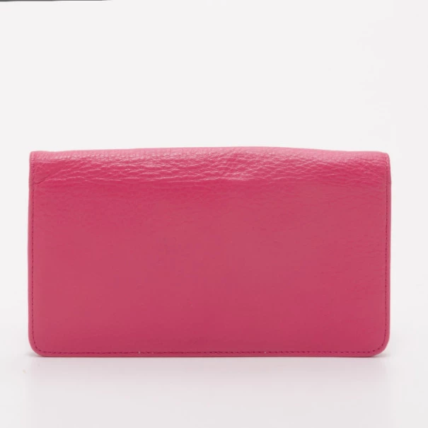 Carry everything you need in this fun and pink Postman’s Lock Continental Wallet by Mulberry. Made from grained leather in an unforgettable shade of pink, the exterior features a flap front closure with Mulberry’s postman twist lock. The interior is lined with monogram twill and features a zip compartment, two open pockets and six credit card pockets. Original Retail Price: US $440Condition: Like New (Minor scratches on front logo, otherwise very clean interior and exterior)Dimensions: 19 CM(L) 11 CM(H) Material: Leather Exterior, Twill InteriorHardware: Silver-toneIncludes: The Luxury Closet Dustbag