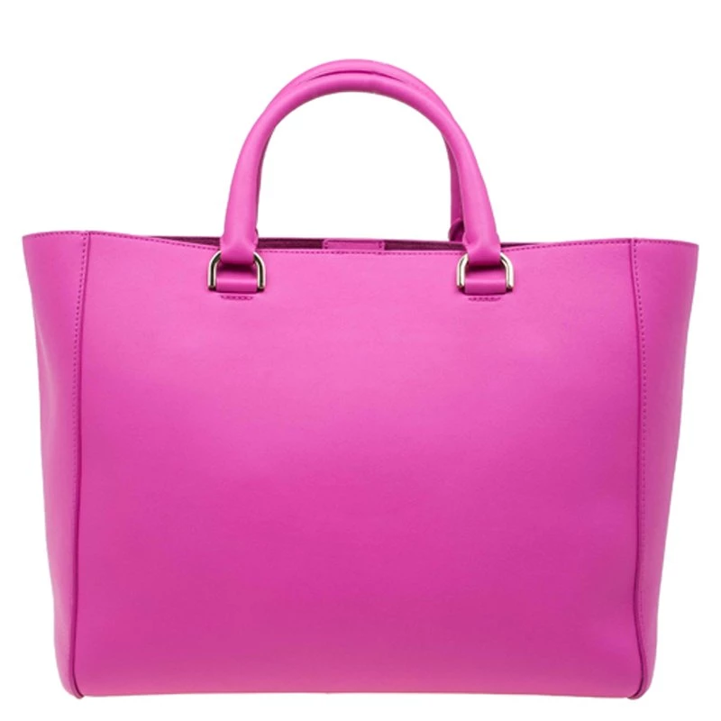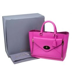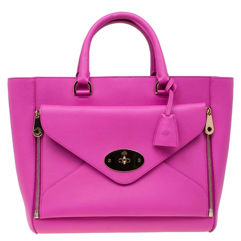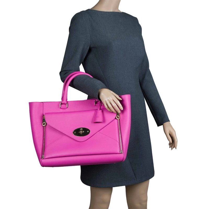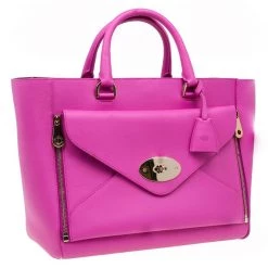 The willow tote from Mulberry is made with a bright pink hue. Made from a leather exterior, it is designed to be durable, the interior is lined with soft suede. In addition to the spacious main compartment, it has an additional pocket on the exterior to keep essentials easily accessible. A clochette dangles from the strap and gold-tone hardware completes its design.