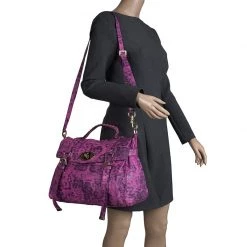 Mulberry’s smart and stylish ‘Alexa’ satchel is a timeless collectible. Crafted in pink leopard printed leather, the bag features a gold tone turn-lock closure, and an adjustable shoulder strap. The dual belted flap and an intricately woven top handle add an edge to the design. While the suede-lined interior is perfectly sized to carry your essentials. Own this piece for a quirky addition to your closet.