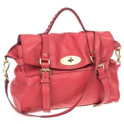 Named after the beautiful model, Alexa Chung, this bag by Mulberry is infused with her London Chic style. Crafted from pink leather, this bag straps and enclosed with oval shaped gold tone magnetic closure and woven handle. The interior is lined with textile and has patch and zipper pockets with Mulberry leather tag and charm.Original Retail Price: US $2,100