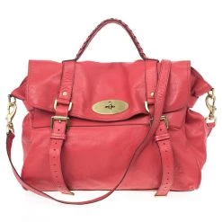 Named after the beautiful model, Alexa Chung, this bag by Mulberry is infused with her London Chic style. Crafted from pink leather, this bag straps and enclosed with oval shaped gold tone magnetic closure and woven handle. The interior is lined with textile and has patch and zipper pockets with Mulberry leather tag and charm.Original Retail Price: US $2,100